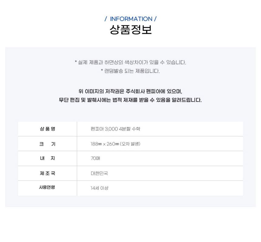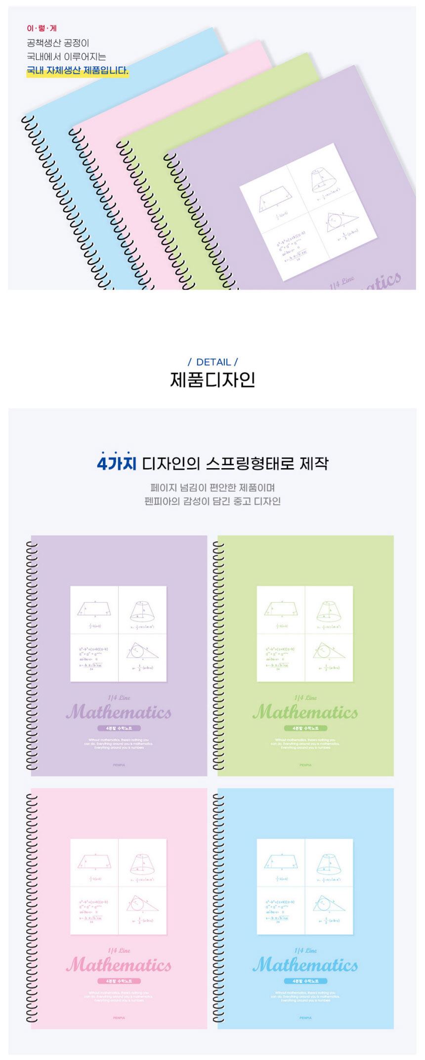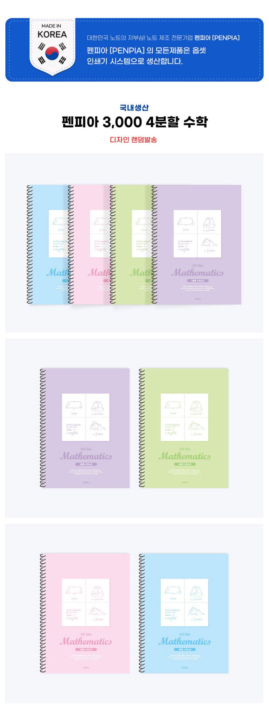 펜피아 중고생 3000 스프링 4분할 수학노트 랜덤 10권 / 설래임 / 디비디비 / 구매하기 / 특가할인