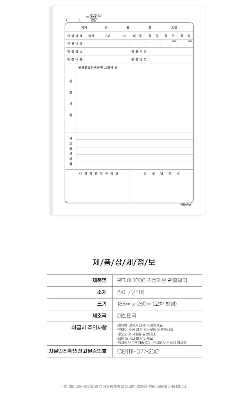 펜피아 초등 제본노트 관찰일기 랜덤 1팩(10권) / 설래임 / 디비디비 / 구매하기 / 특가할인
