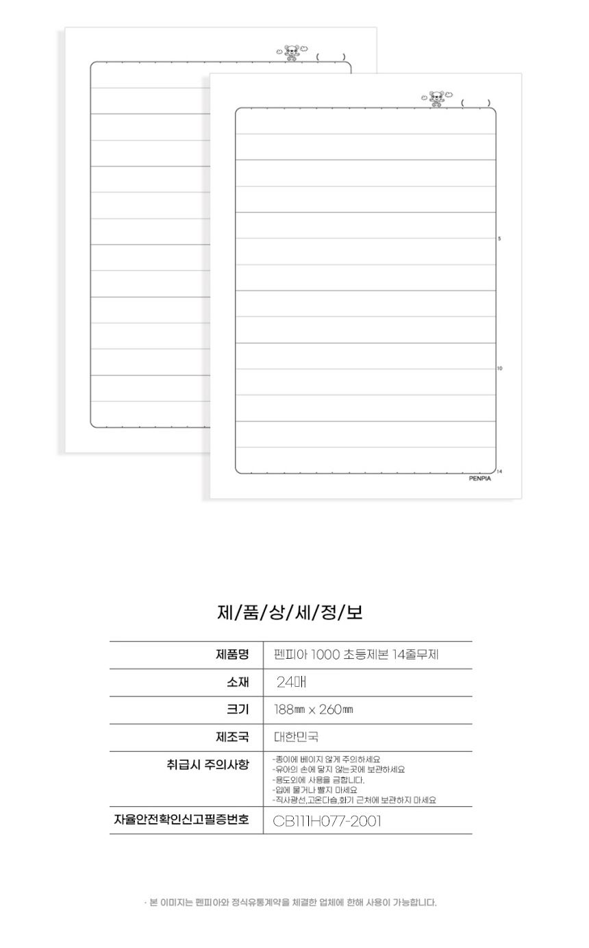 펜피아 초등노트 1-2 무제노트 14줄 랜덤 1팩(10권)