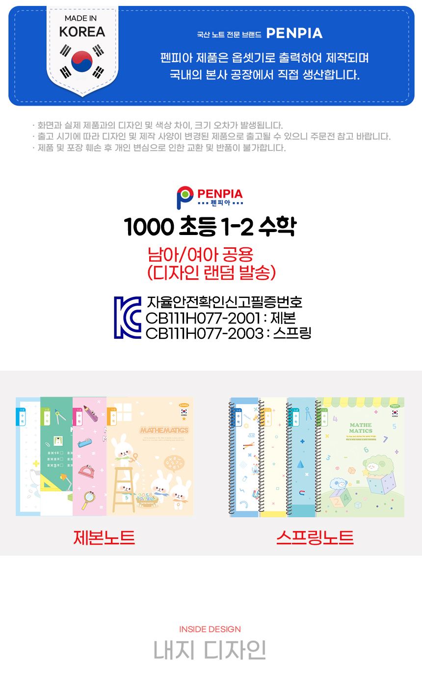 펜피아 초등노트 1-2 수학노트 1팩(10권) / 설래임 / 디비디비 / 구매하기 / 특가할인