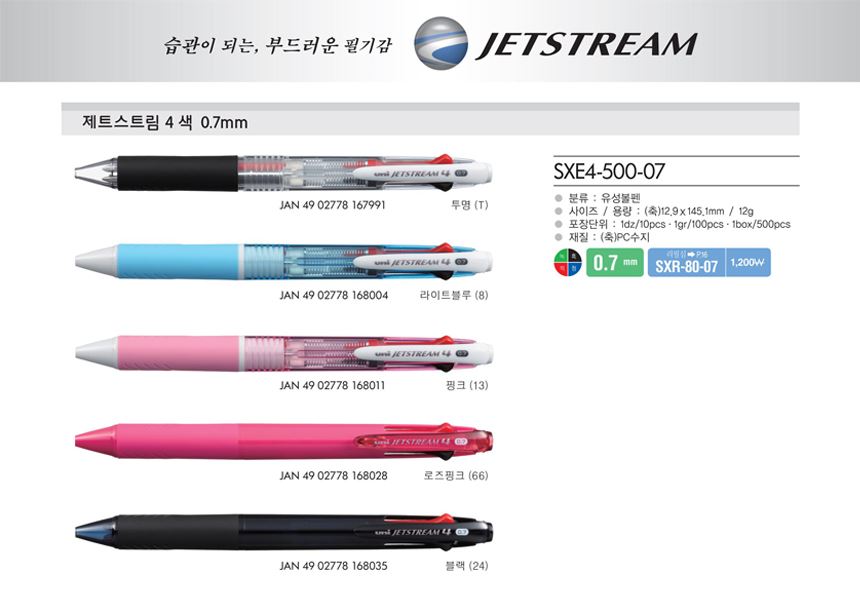 • [무료각인] 유니 멀티 볼펜 제트스트림 4색 0.7mm MSXE4-500-07