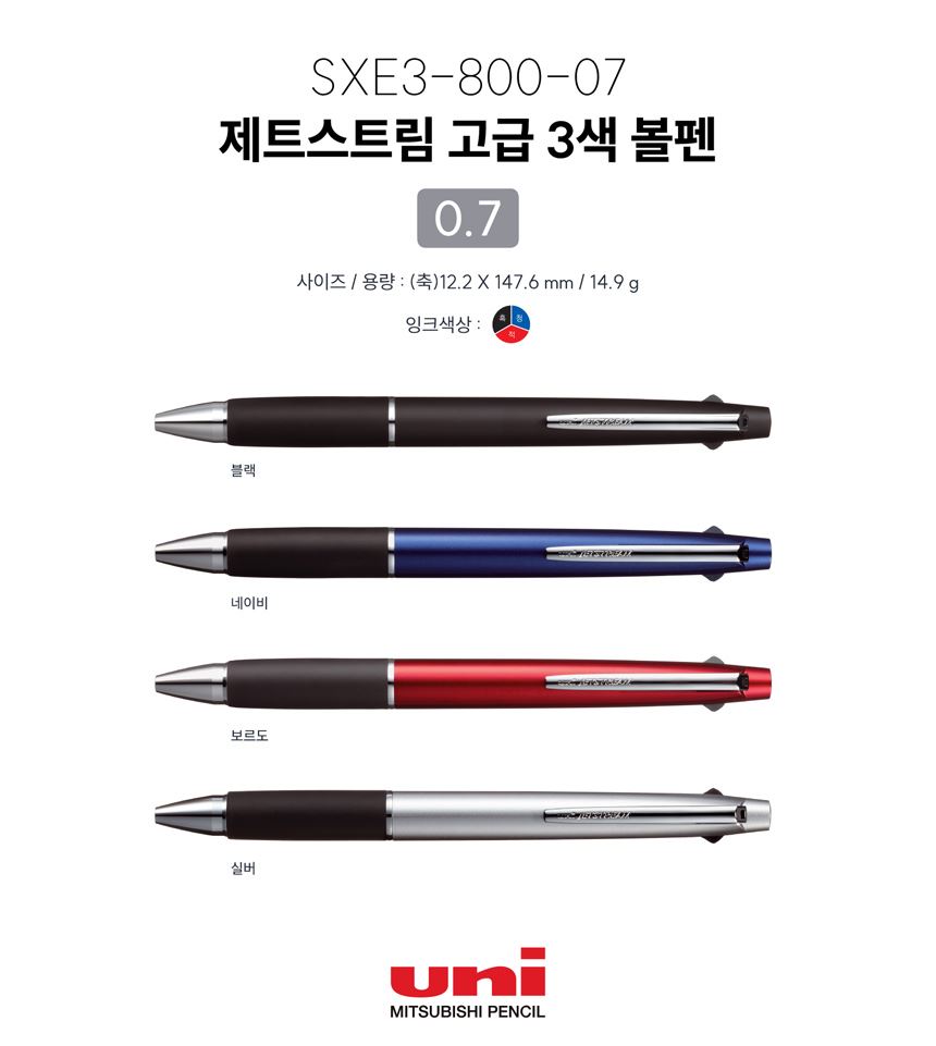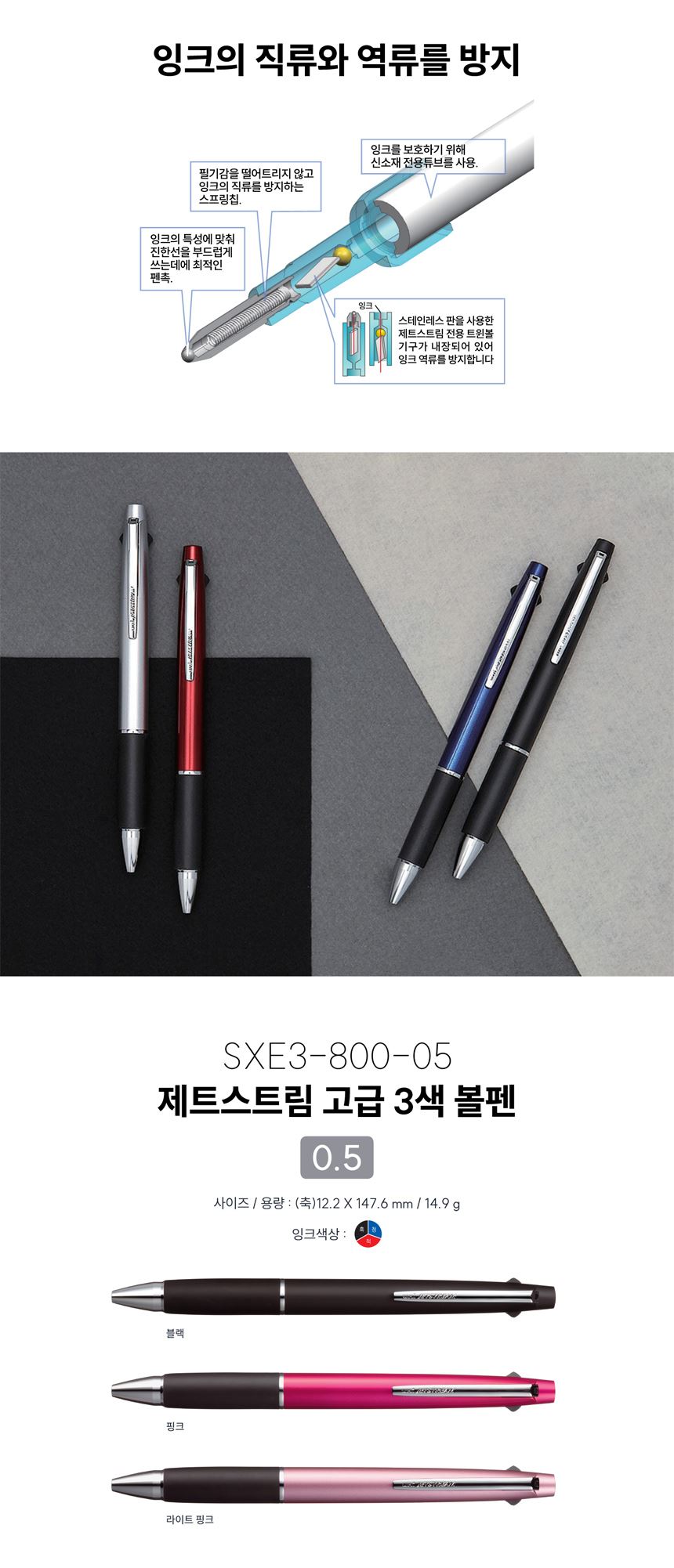[무료각인] 유니 멀티 볼펜 제트스트림 고급 3색 0.5mm SXE3-800-05