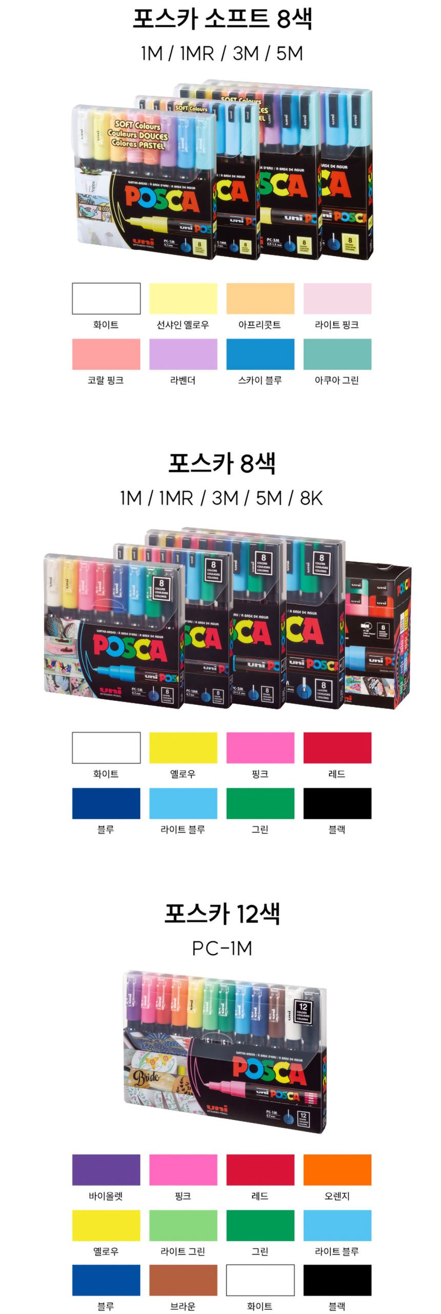 • 유니 데코용 수성 마카펜 포스카 모노톤 컬러 PC-5M 8색