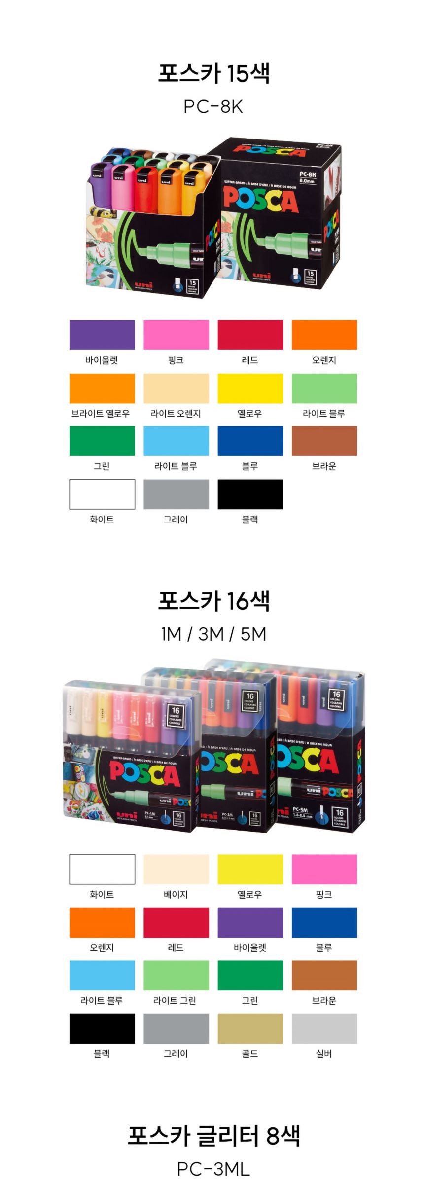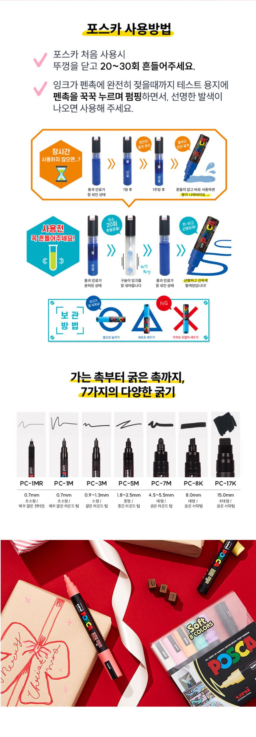 • 유니 데코용 수성 마카펜 포스카 8색 세트