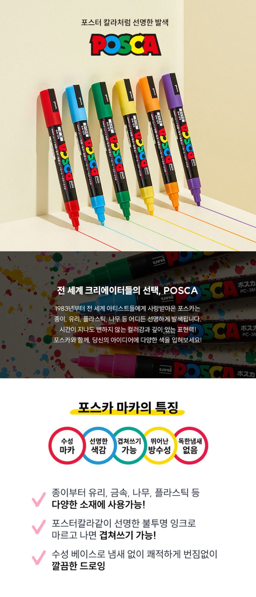 유니 데코용 수성 마카펜 포스카 PC-3ML 글리터 8색 / 설래임 / 디비디비 / 구매하기 / 특가할인