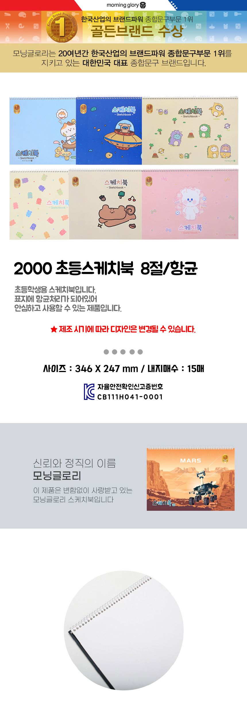 모닝글로리 미술 준비물 2000 초등 스케치북 8절/항균