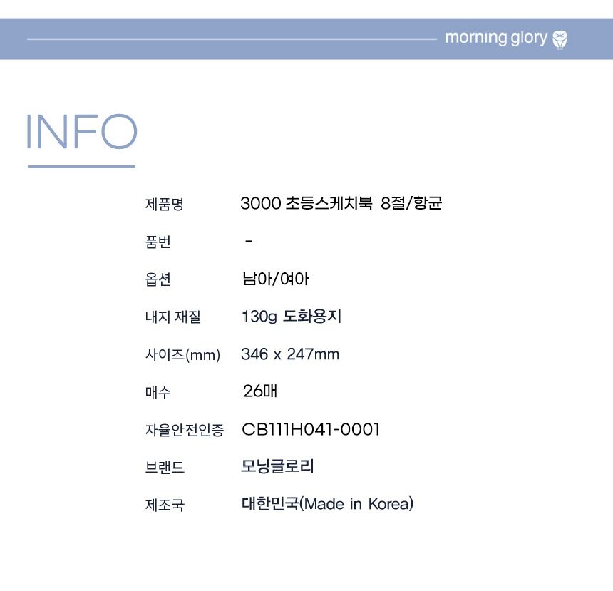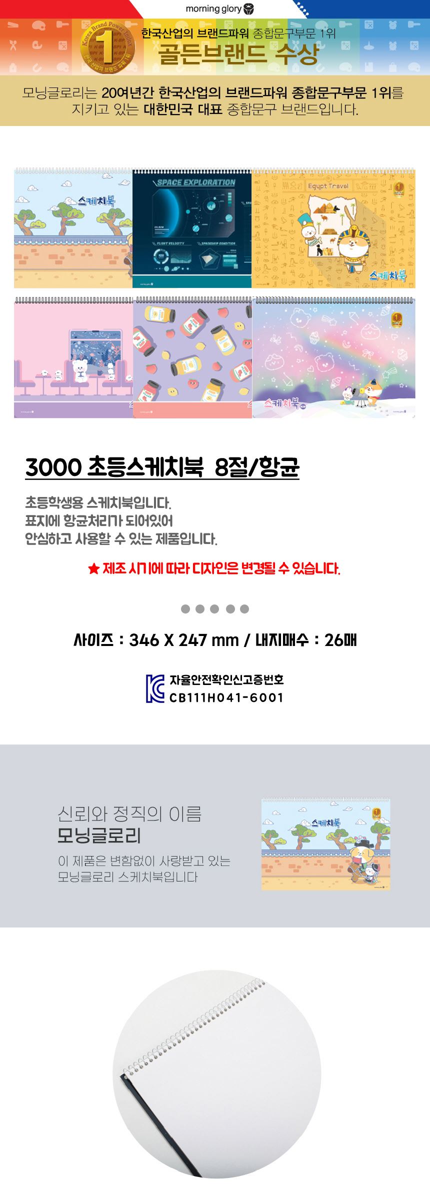 모닝글로리 미술 준비물 3000 초등스케치북 8절/항균