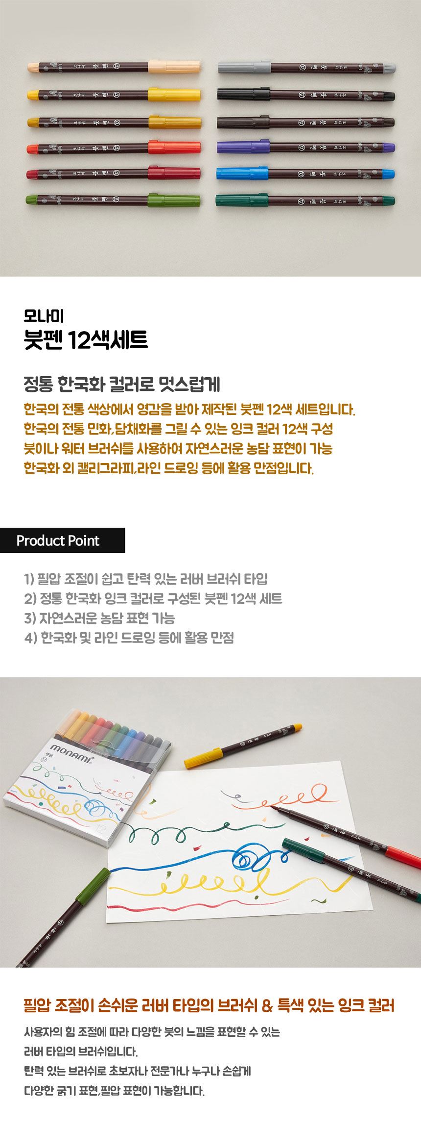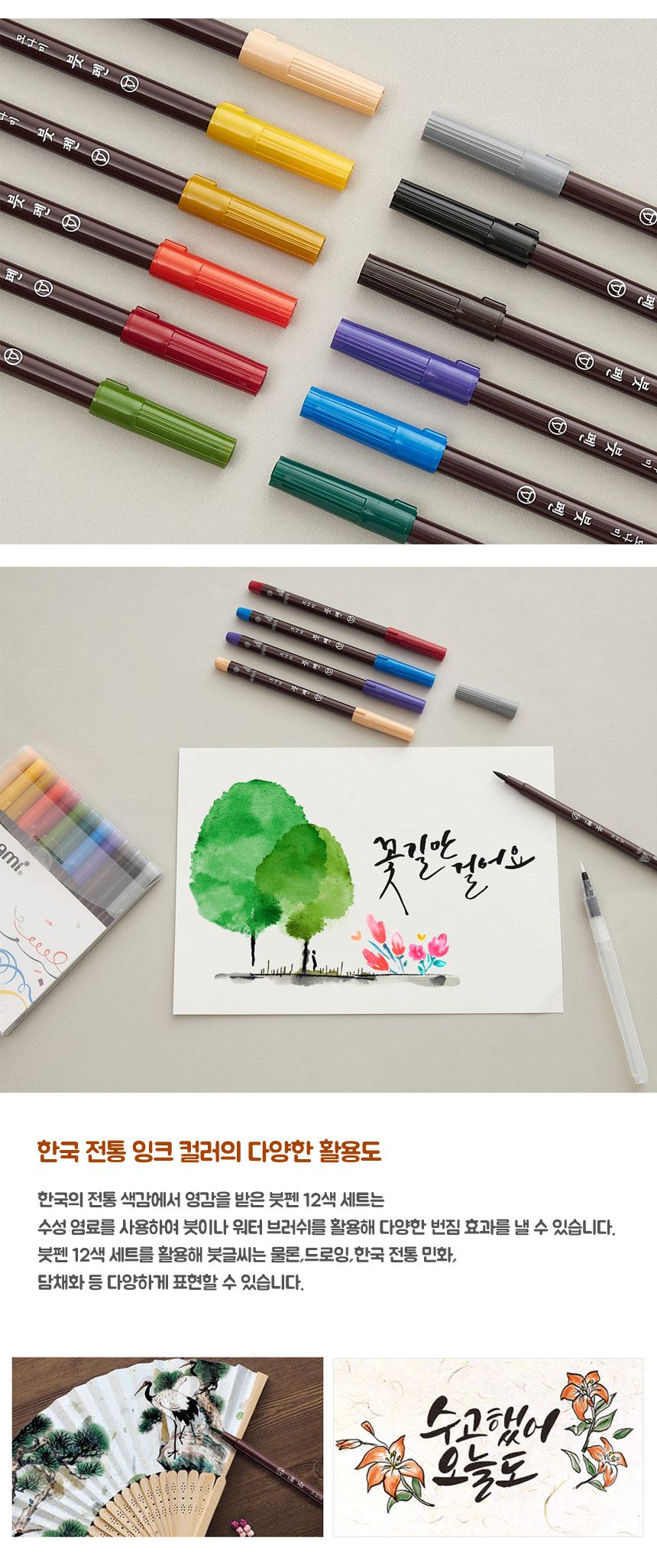• 모나미 한국화 민화 캘리그라피 붓펜 12색 세트