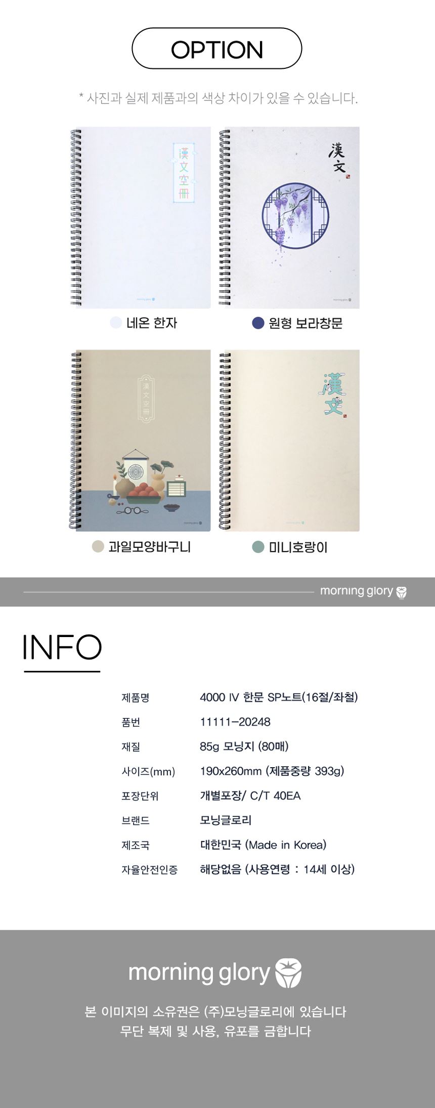 • 모닝글로리 4000 아이보리 한문 스프링노트 16절 좌철