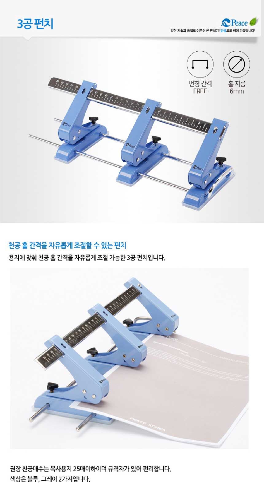 • 평화 6mm 25매 천공 제본용 3공펀치 랜덤색상