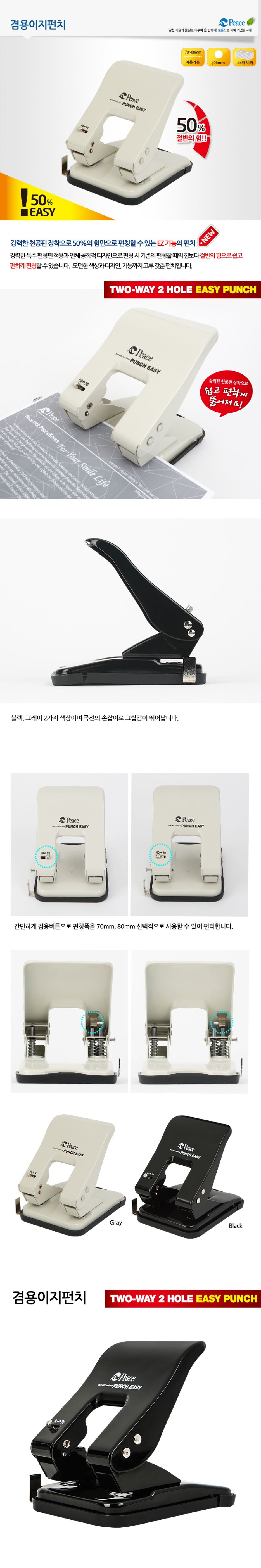 평화 6mm 25매 2공 천공 겸용이지펀치 랜덤색상