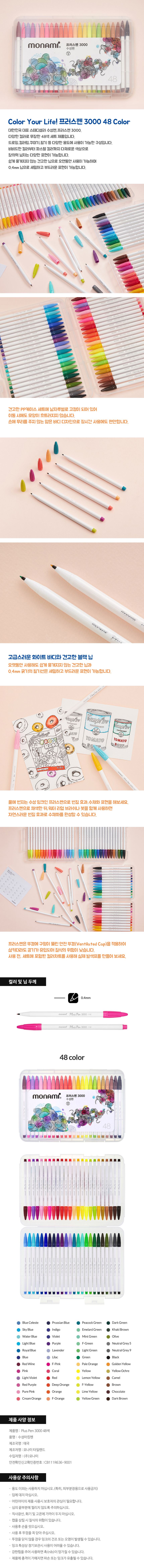 모나미 수채화 드로잉 수성 프러스펜 3000 48색세트