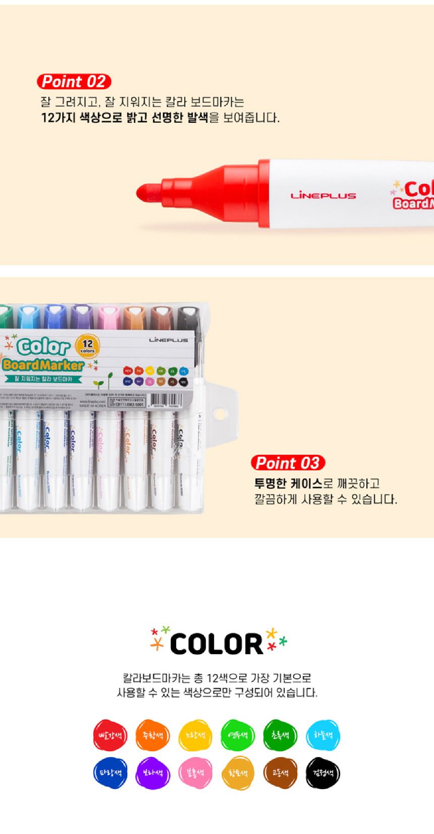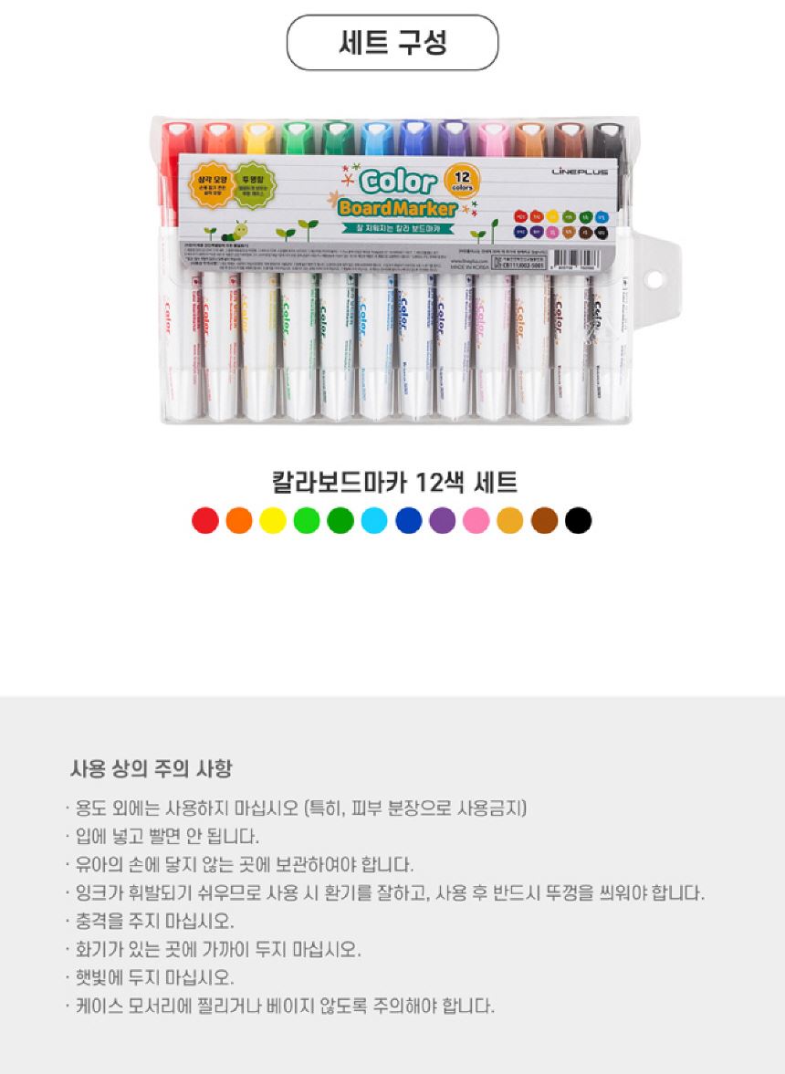 라인프러스 삼각 칼라 보드마카 12색세트 / 설래임 / 디비디비 / 구매하기 / 특가할인