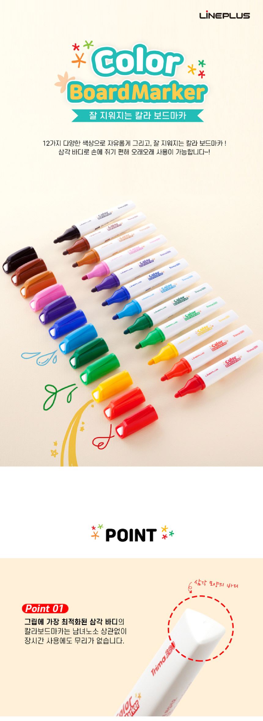라인프러스 삼각 칼라 보드마카 12색세트