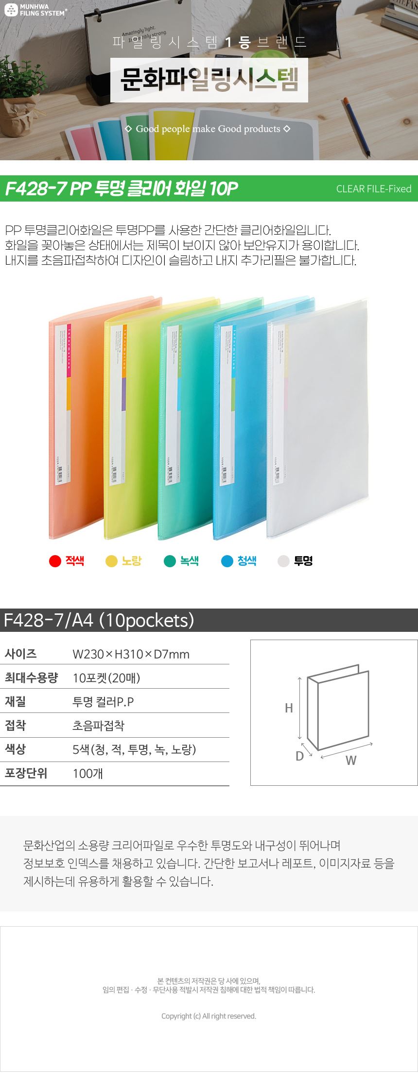 품명 PP 투명 클리어화일 10P F428-7