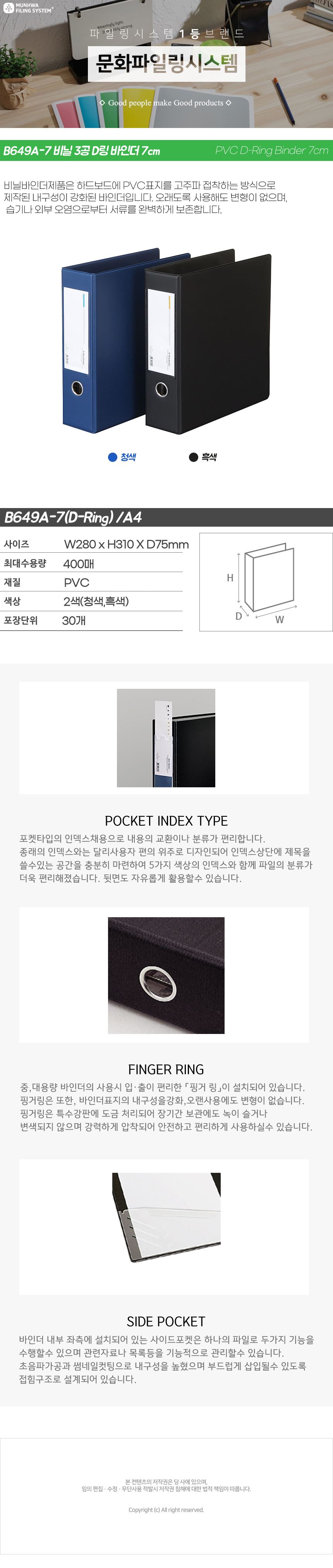• 문화산업 A4 비닐 3공 D링 바인더 7cm B649A-7