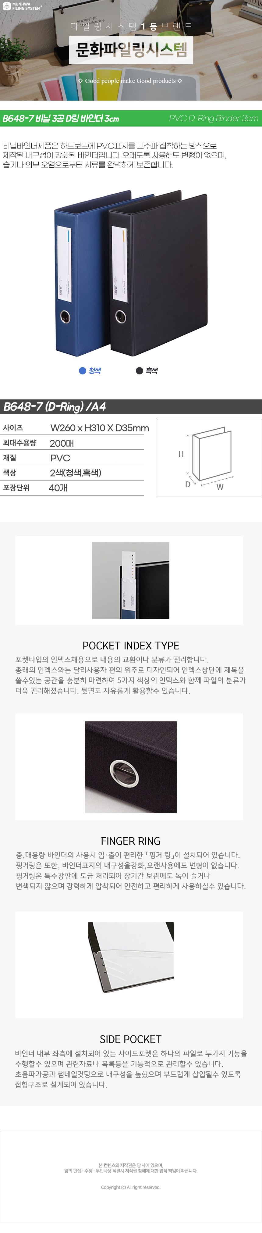 품명 비닐 3공 D링 바인더 3cm B648-7