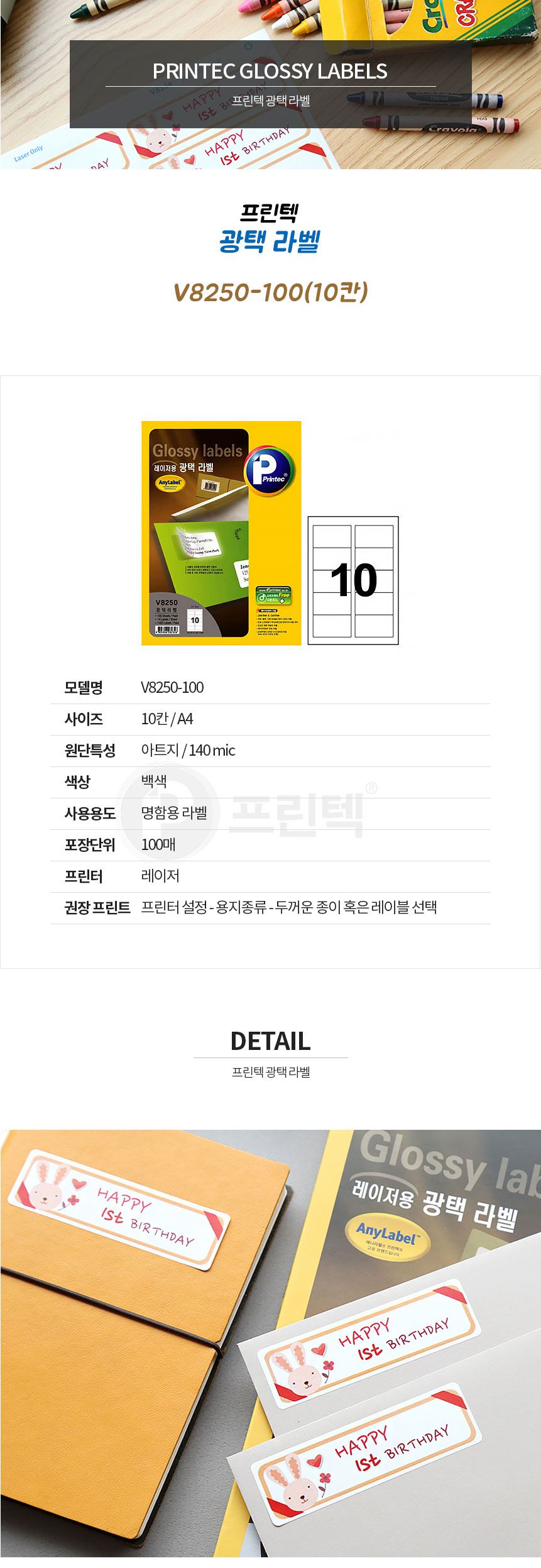 프린텍 레이저용 광택라벨 애니라벨 10칸 100매 V8250-100