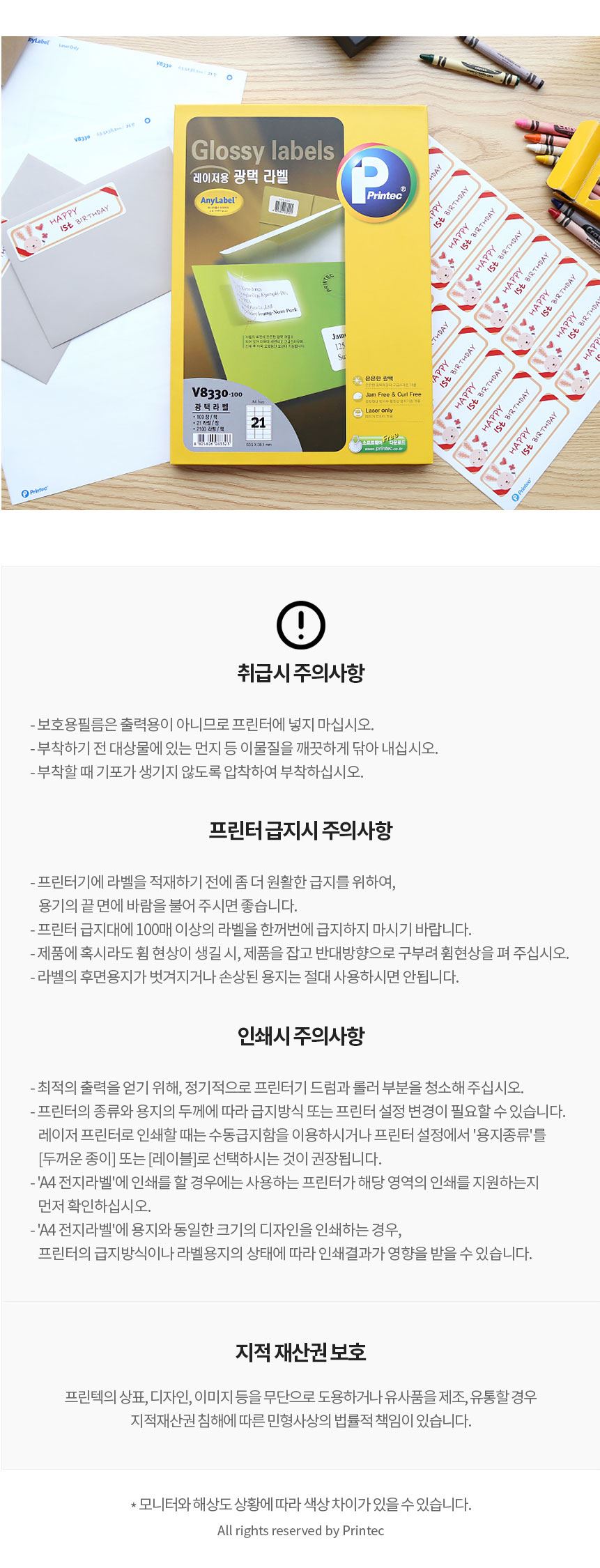 프린텍 레이저용 광택라벨 애니라벨 40칸 100매 V8410-100 / 설래임 / 디비디비 / 구매하기 / 특가할인