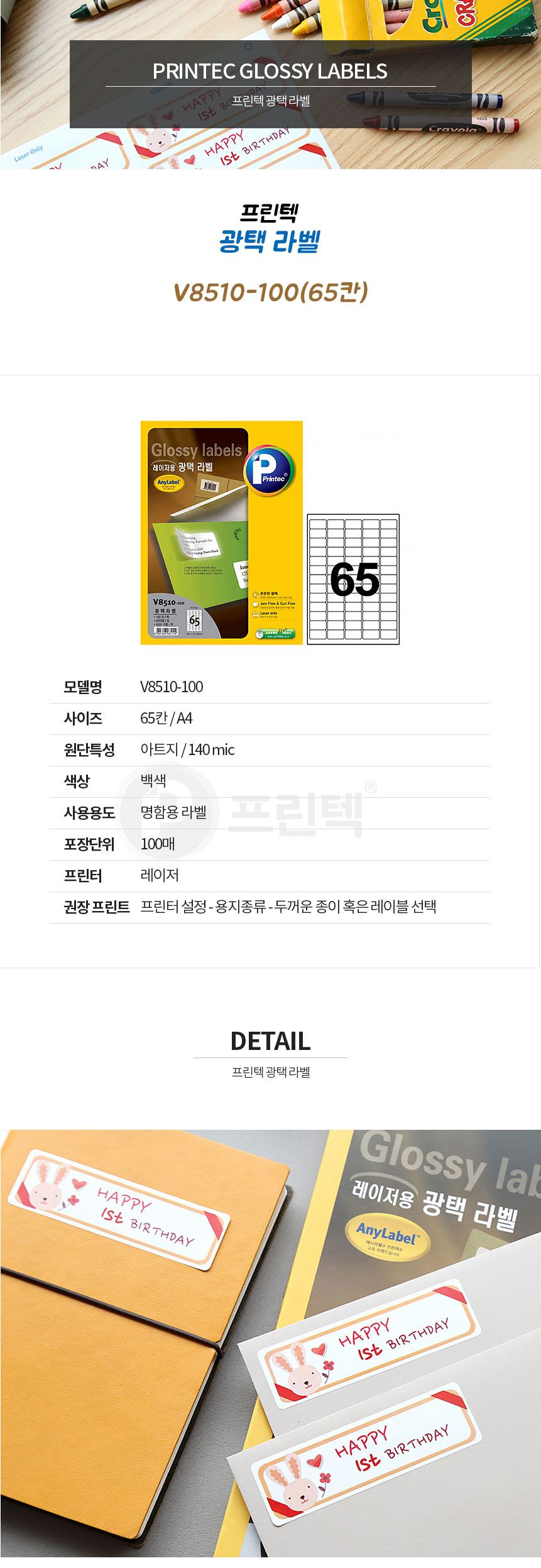 • 프린텍 레이저용 광택라벨 애니라벨 65칸 100매 V8510-100