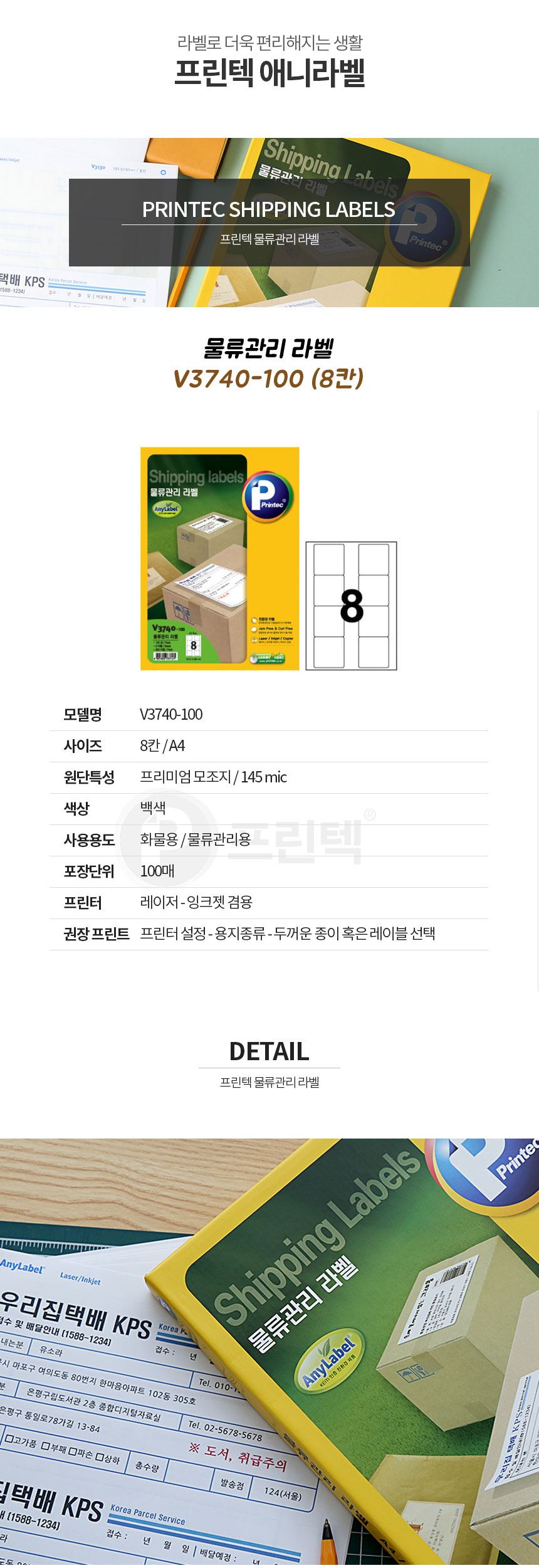 • 프린텍 물류관리라벨 애니라벨 8칸 100매 V3740-100