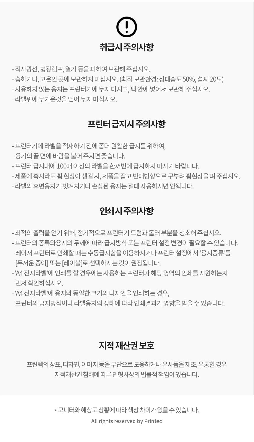 ㆍ 제품의 불량이 아닌 소비자의 귀책사유로 제품의 불량이 발생한 경우에는 환불, 교환을 받으실 수 없습니다.
