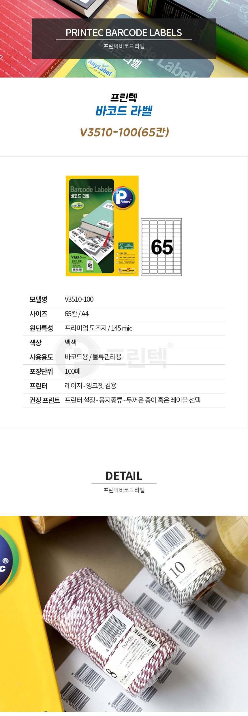 • 프린텍 바코드라벨 애니라벨 65칸 100매 V3510-100
