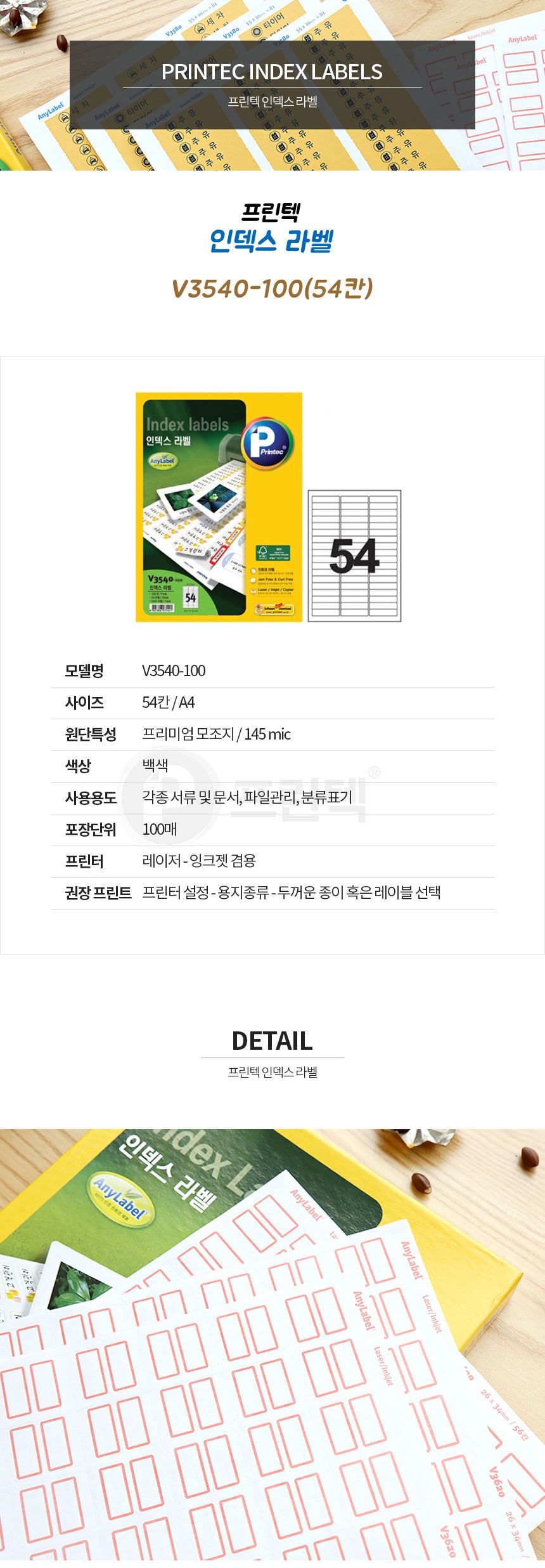 프린텍 인덱스라벨 애니라벨 54칸 100매 V3540-100