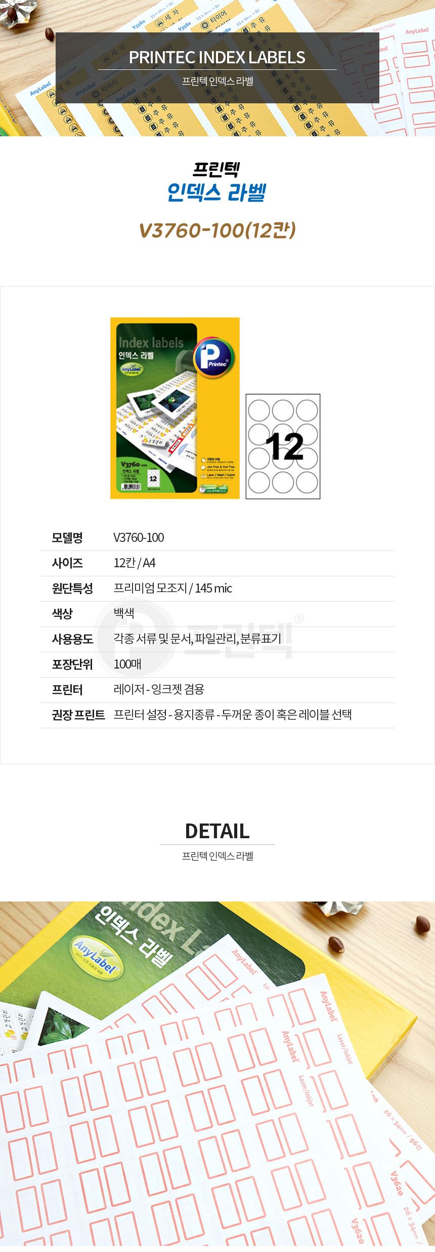 • 프린텍 인덱스라벨 애니라벨 12칸 100매 V3760-100