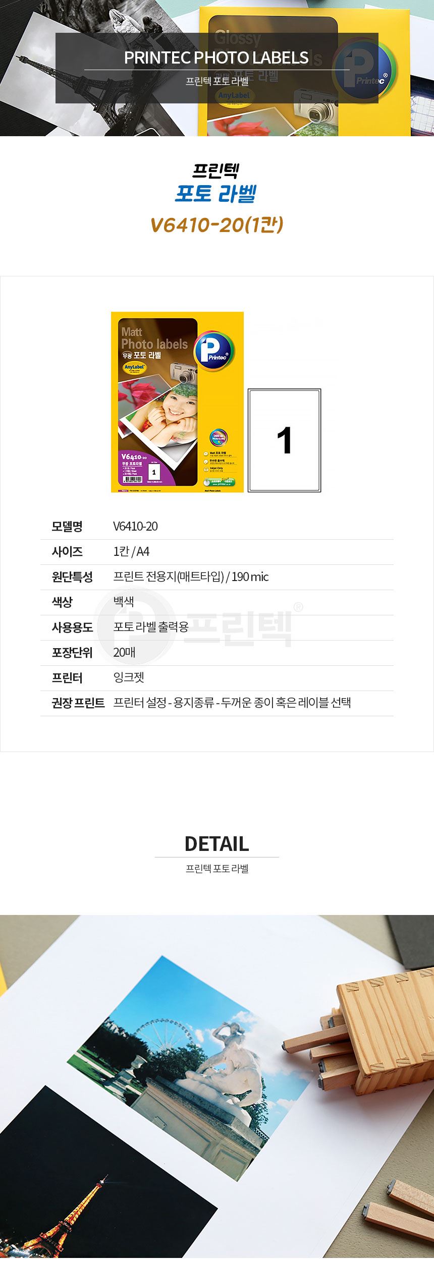 프린텍 잉크젯용 무광 포토라벨 애니라벨 1칸 20매 V6410-20