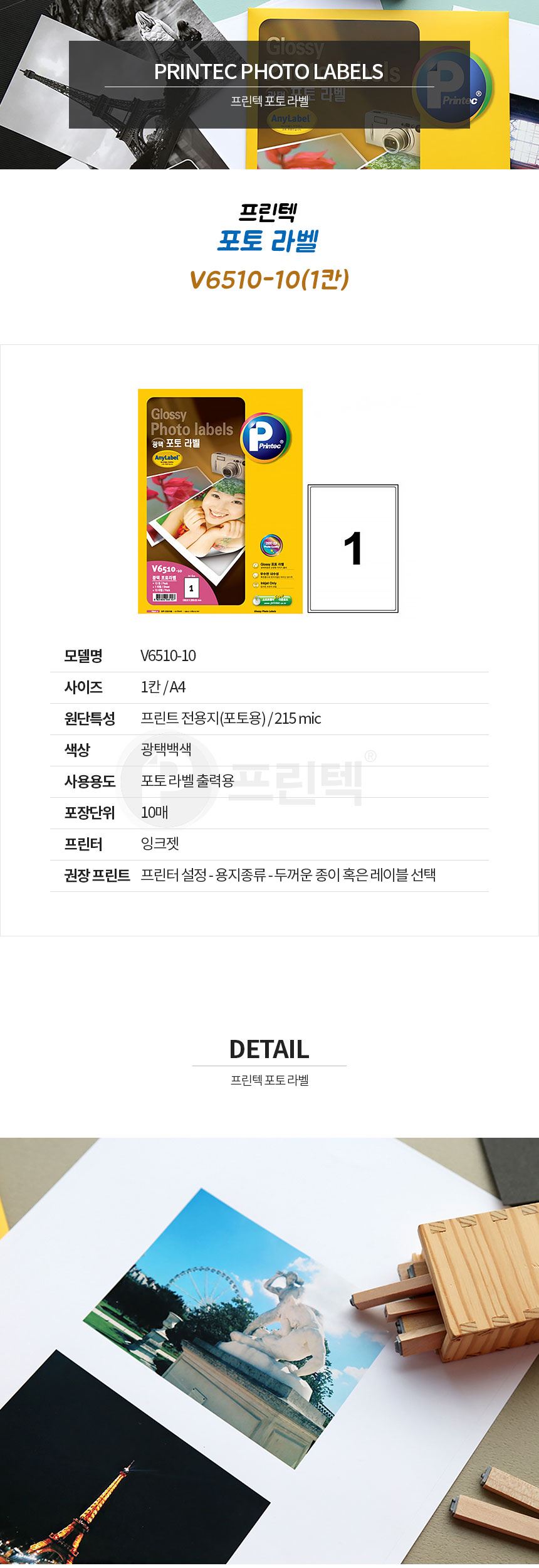 • 프린텍 잉크젯용 광택 포토라벨 애니라벨 1칸 10매 V6510-10