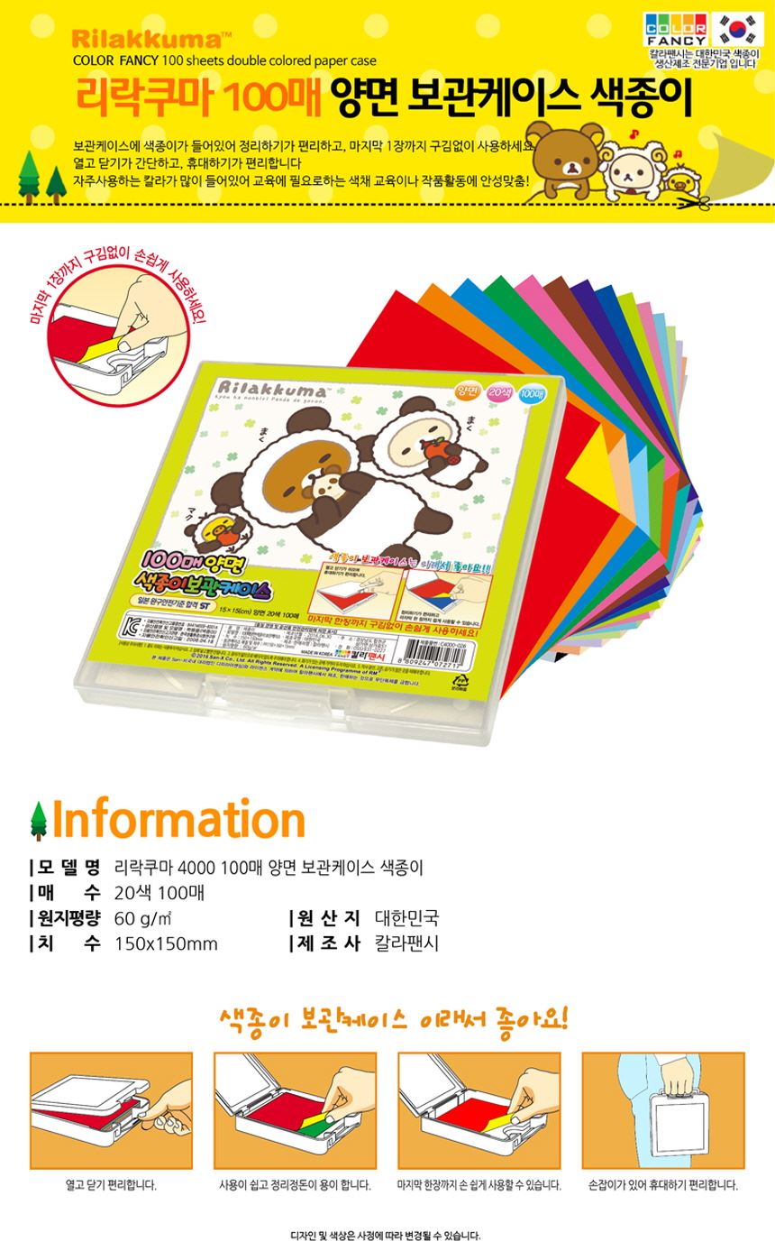 칼라팬시 리락쿠마 양면 색종이 100매 보관 케이스B