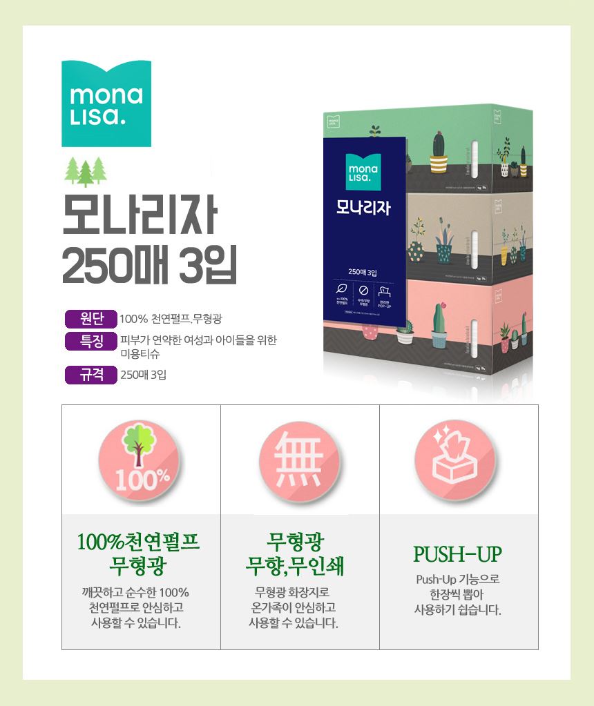 모나리자 무형광 라이브 스마트 각티슈 250매(3곽1팩) / 설래임 / 디비디비 / 구매하기 / 특가할인