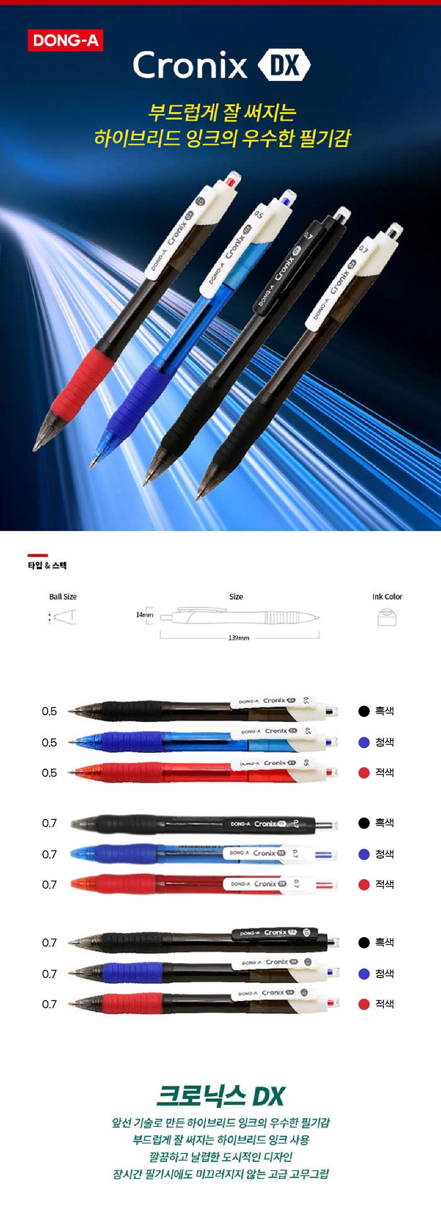 • 동아연필 하이브리드 잉크 유성볼펜 크로닉스DX 1다스(12자루)