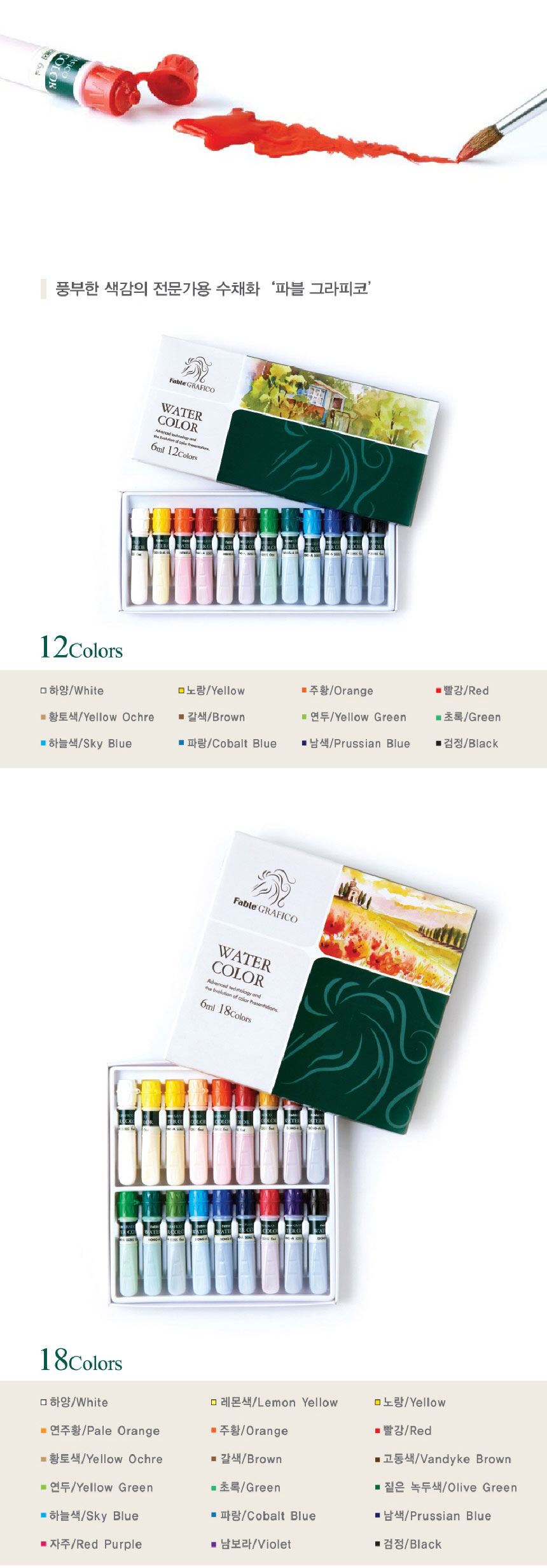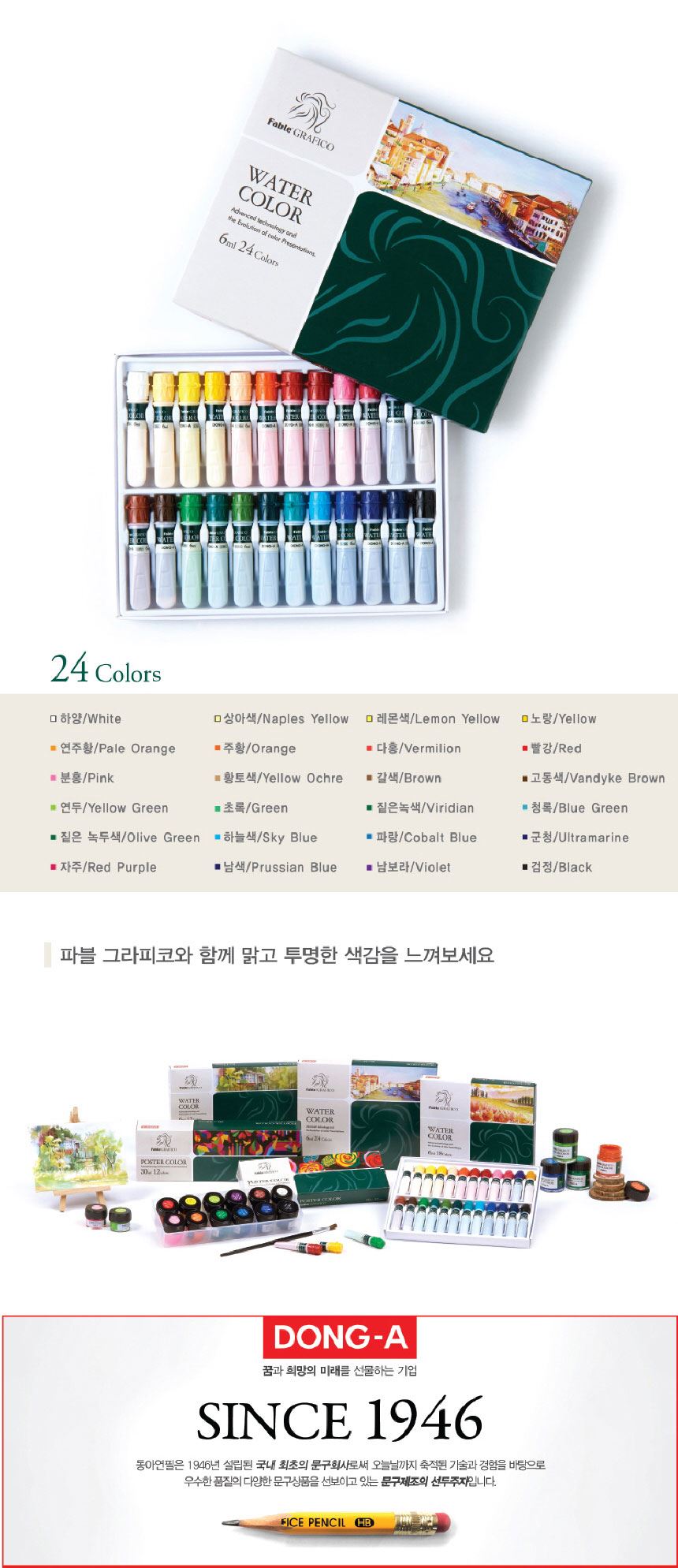 • 동아연필 학생용 전문가용 파블 그라비코 수채 그림물감 6ml