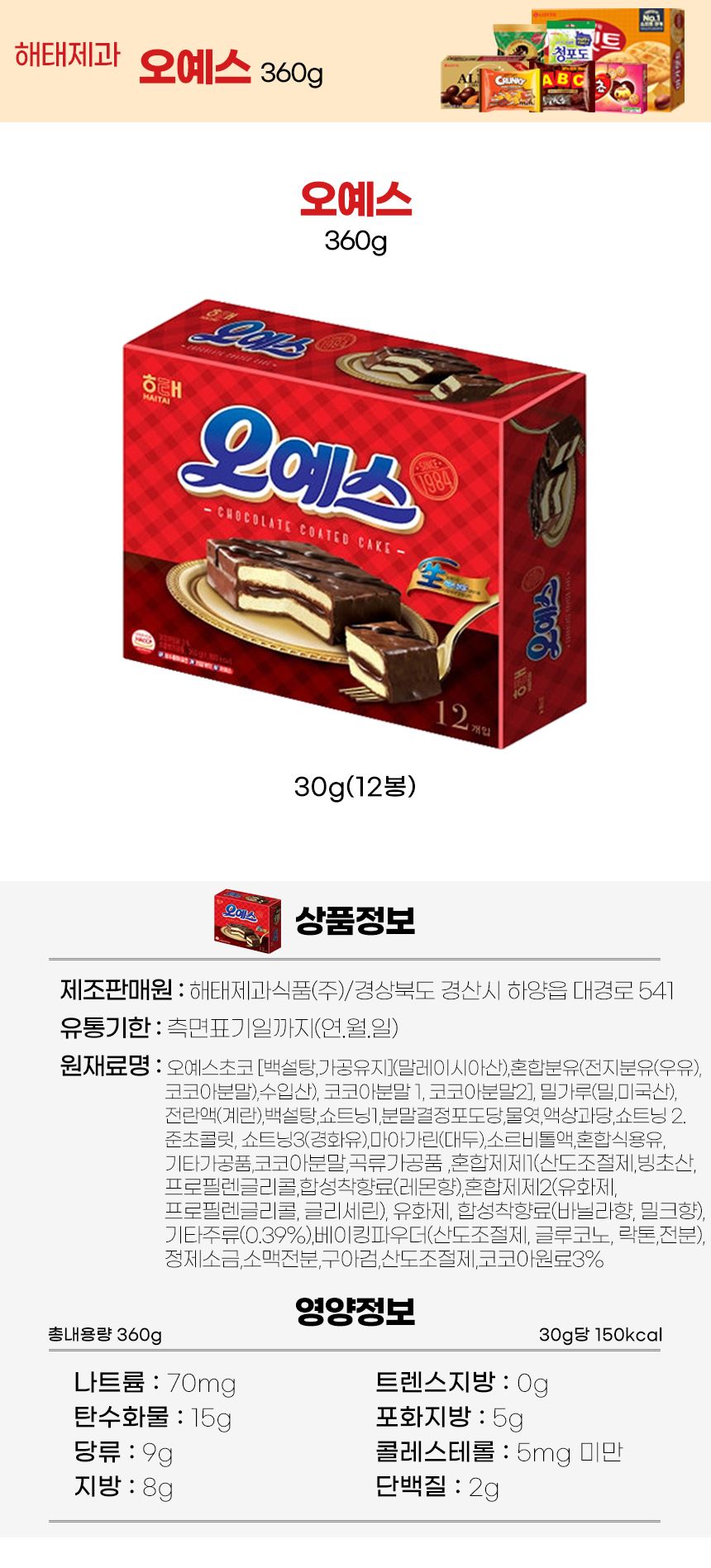 • 해태제과 오예스360g