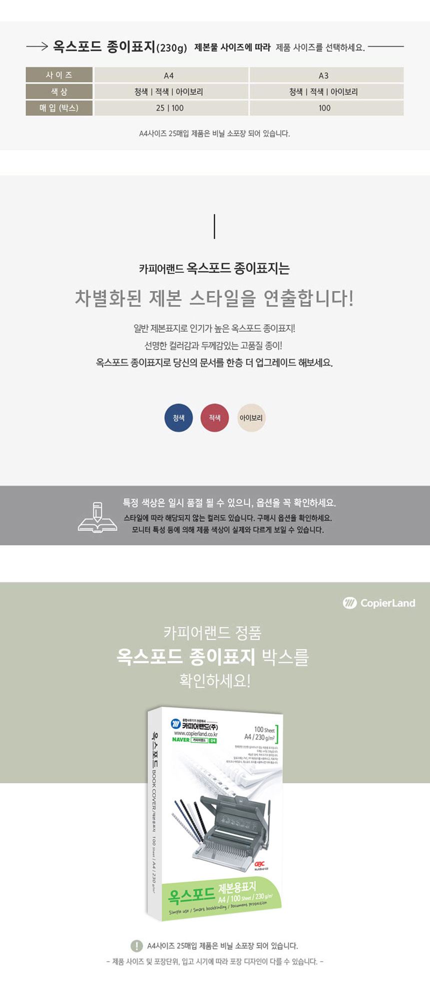 • 카피어랜드 옥스포드 종이 제본표지 A4 230g 100매