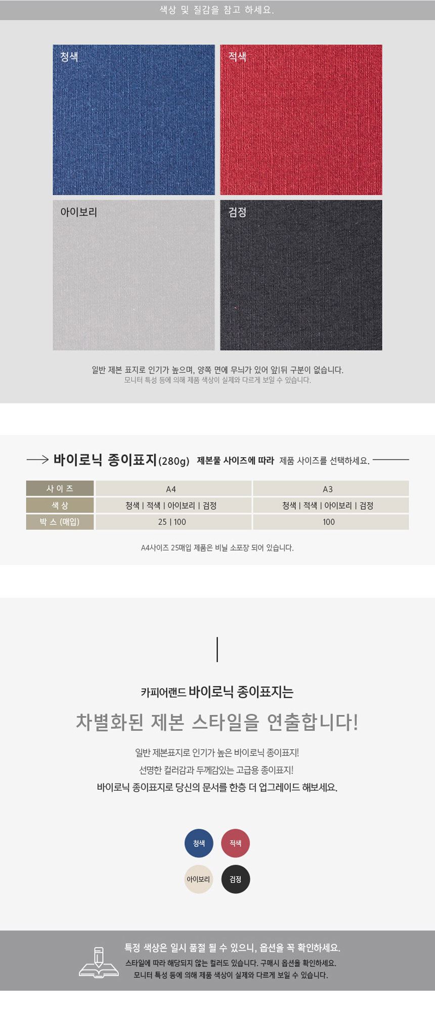 품명 바이로닉 제본표지 A4 280g