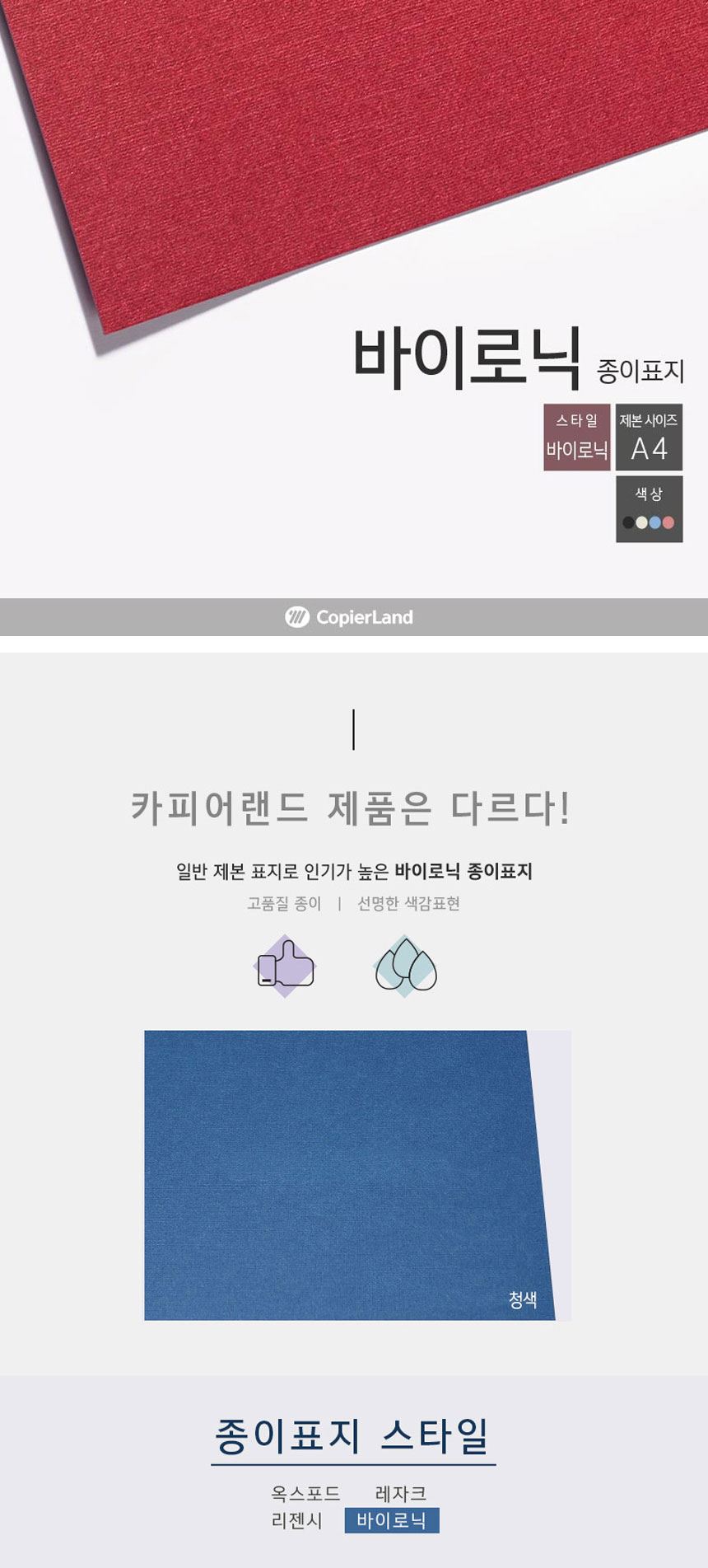 • 카피어랜드 바이로닉 종이 제본표지 A4 280g 100매