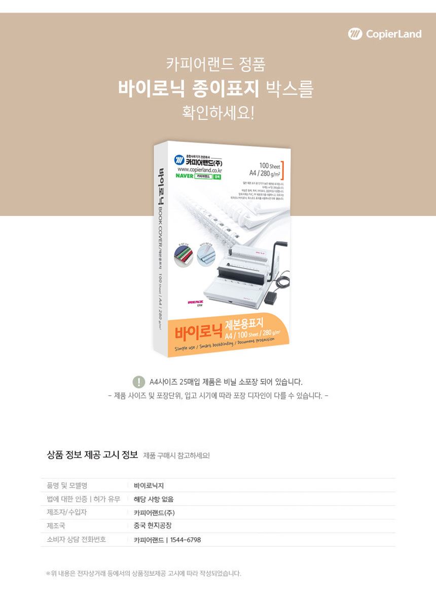 카피어랜드 바이로닉 종이 제본표지 A4 280g 100매 / 설래임 / 디비디비 / 구매하기 / 특가할인