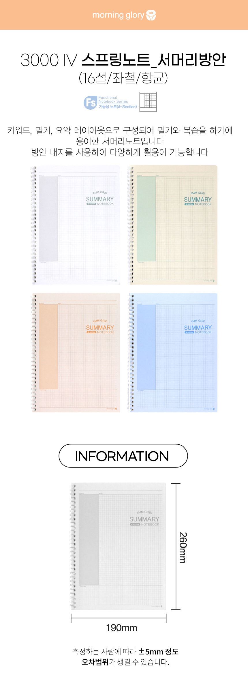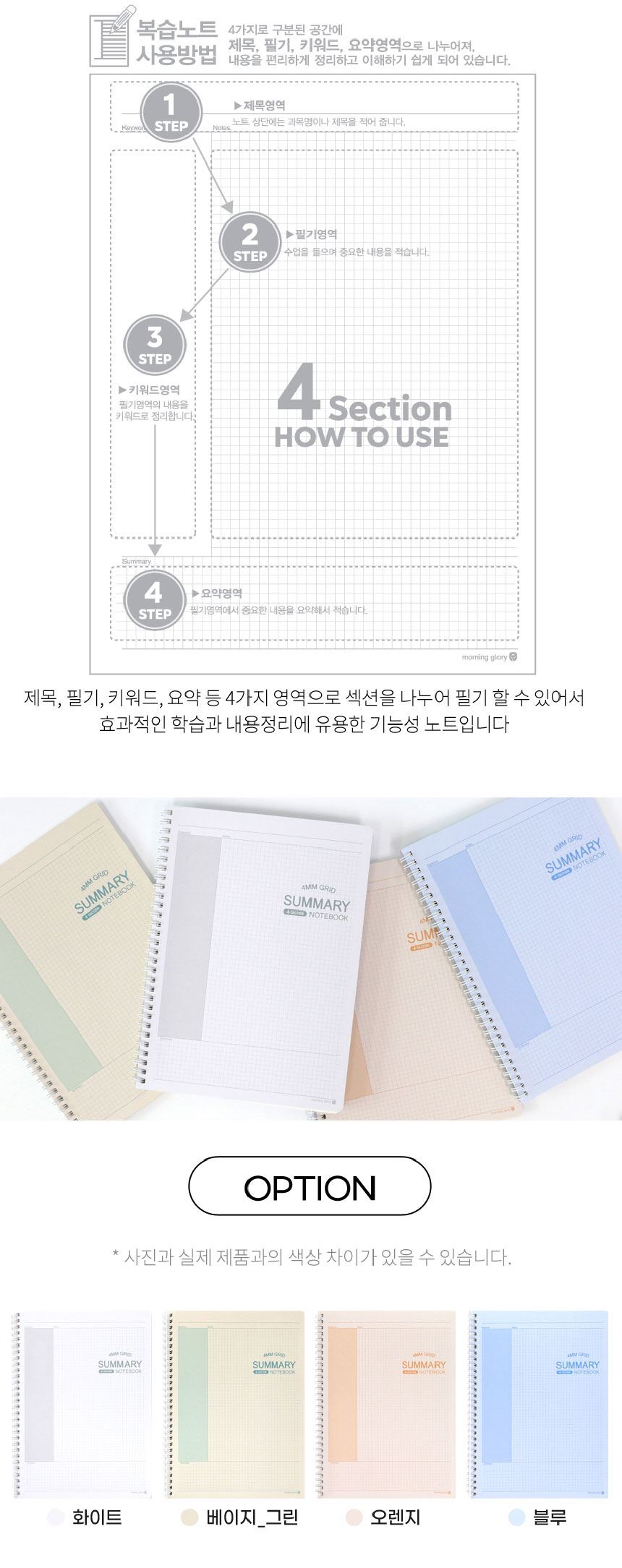 모닝글로리 요점정리 3000 아이보리 스프링노트 써머리 방안