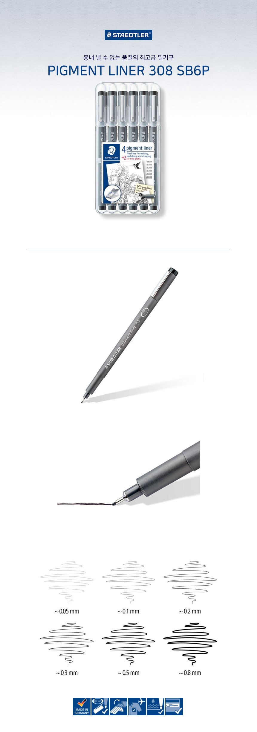 스테들러 드로잉펜 만화펜 피그먼트 라이너 308 6P