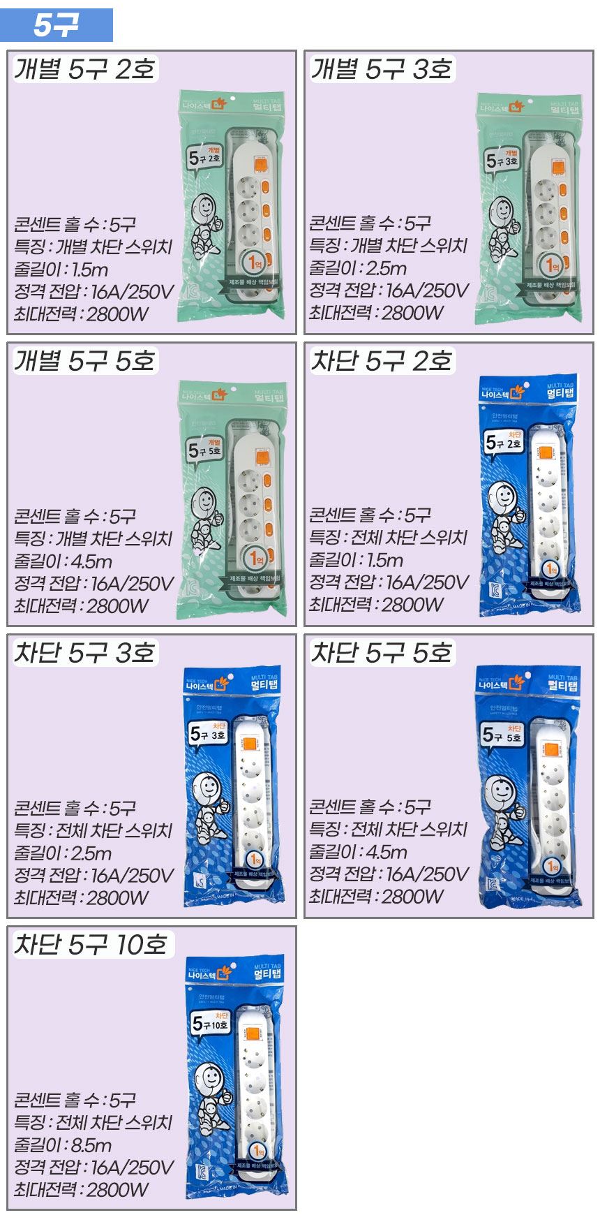 • 나이스텍 16A 멀티콘센트 멀티탭 전체 개별 스위치 2구