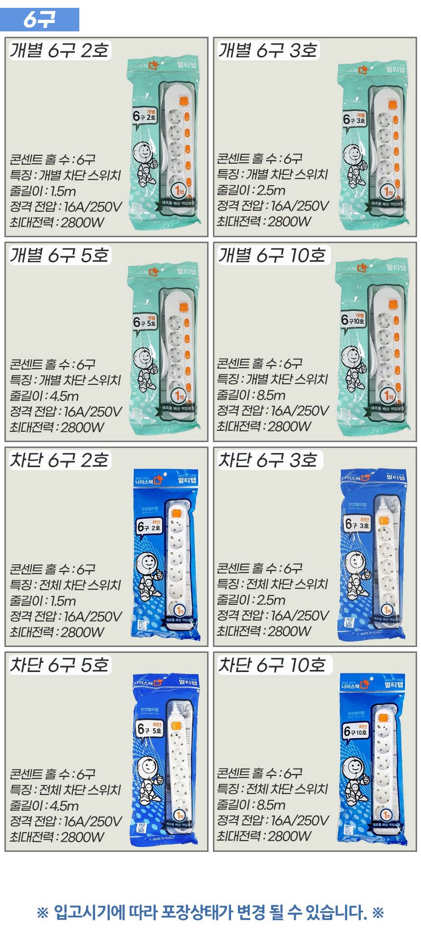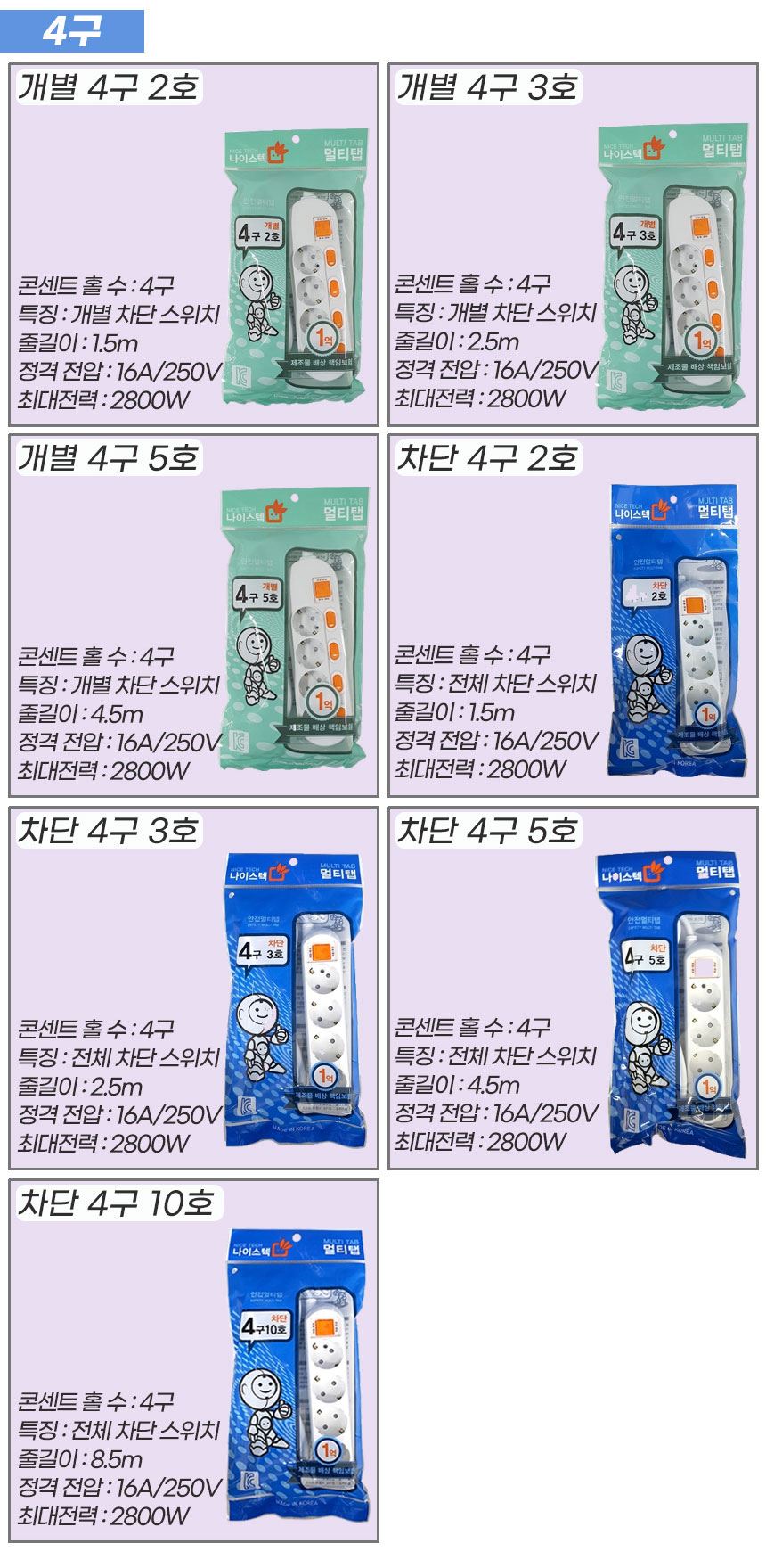 • 나이스텍 16A 멀티콘센트 멀티탭 전체 개별 스위치 4구
