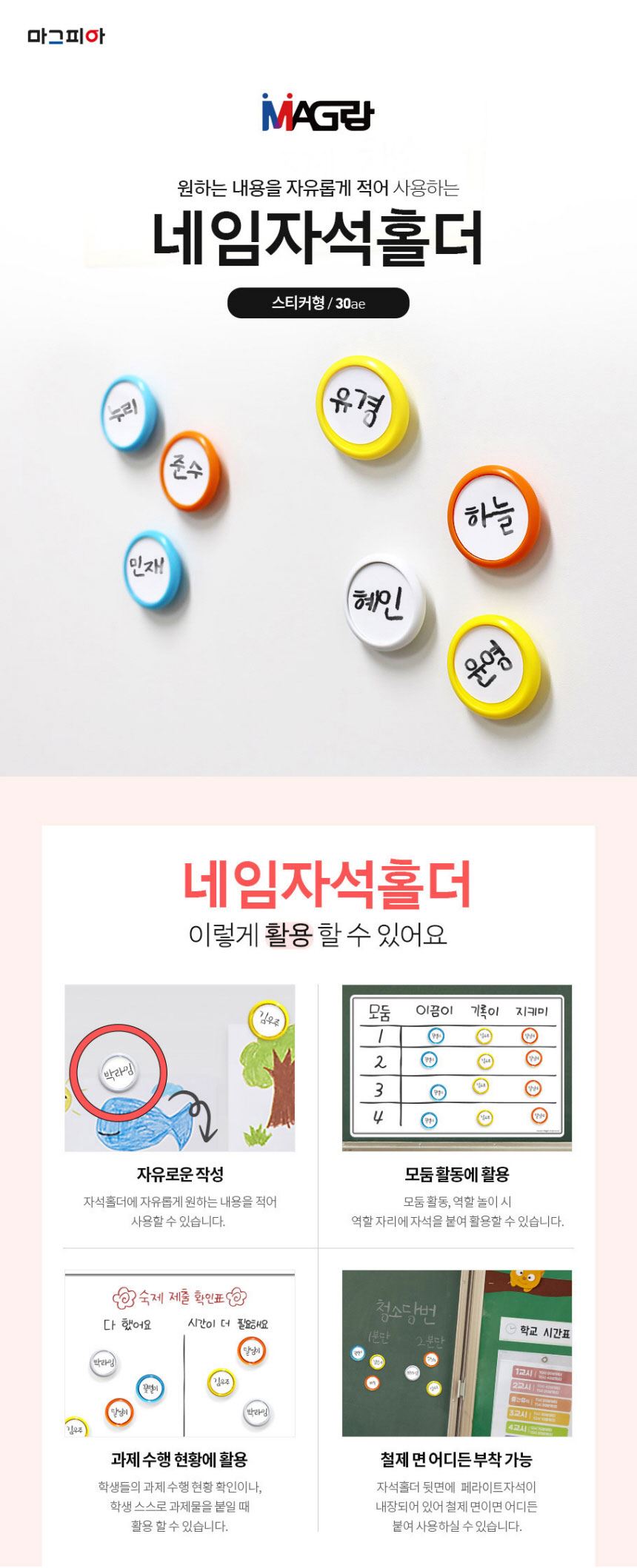 마그피아 칠판 게시판 자석 네임자석홀더_스티커형 30개입 / 설래임 / 디비디비 / 구매하기 / 특가할인