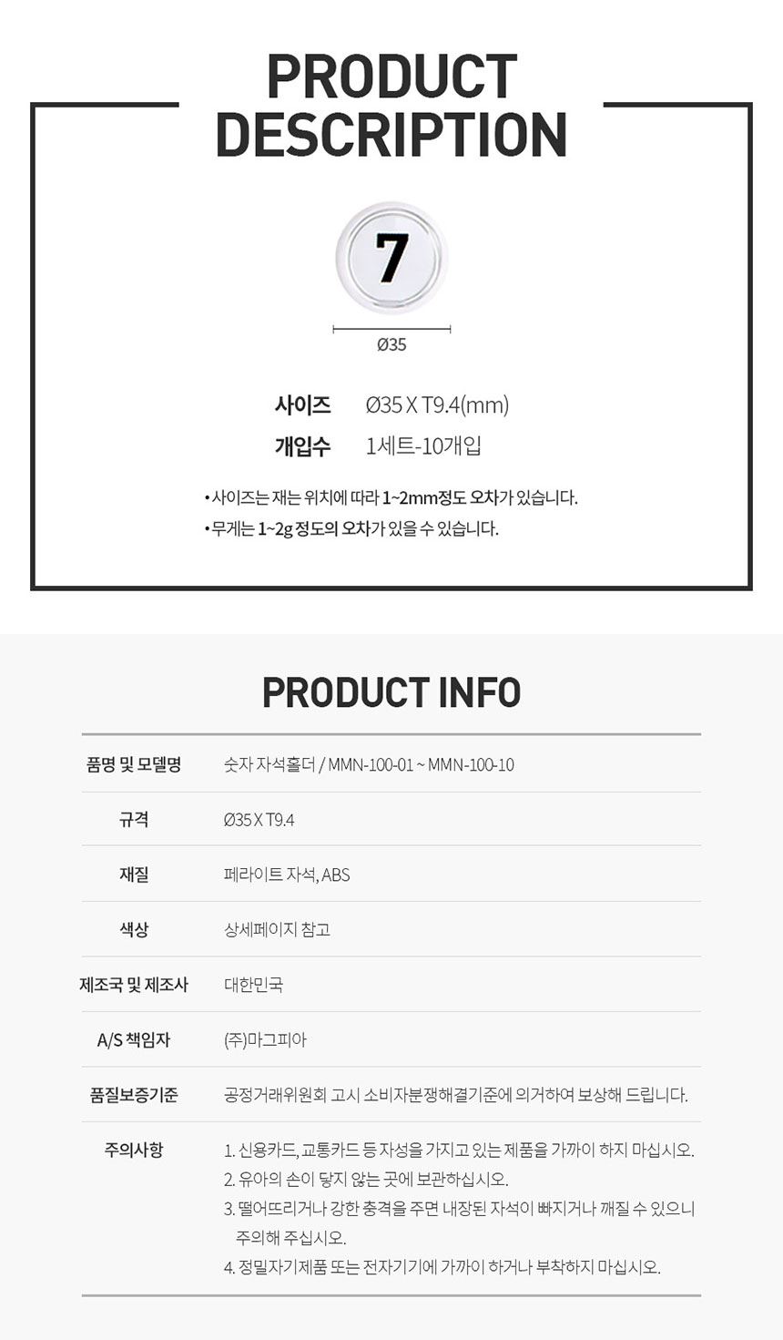품명 숫자 자석홀더