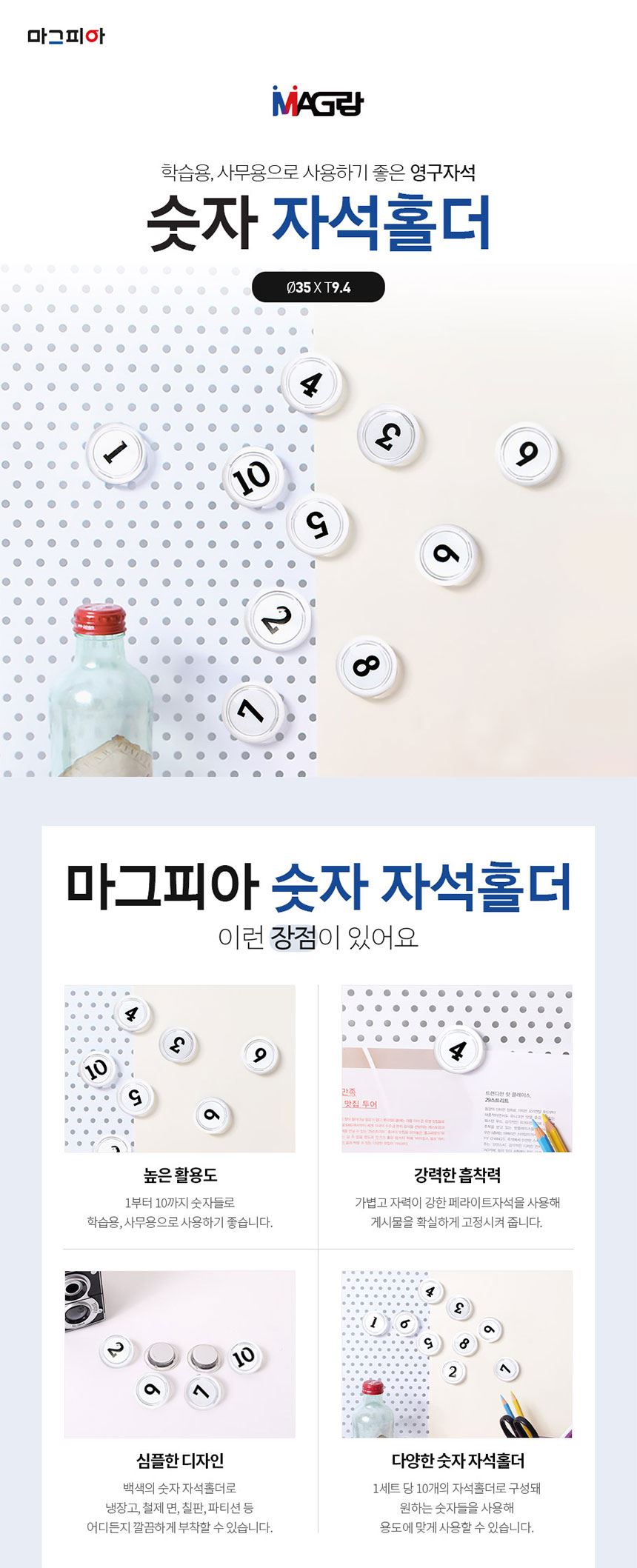 마그피아 학습자석 숫자 자석홀더 35mm 1-100