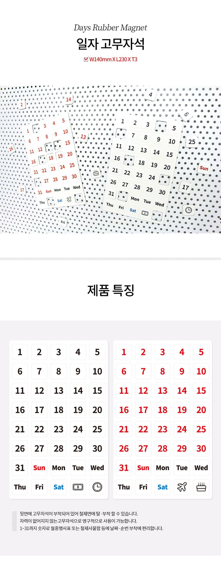 • 마그피아 달력날자 숫자자석 요일 날짜 일자 고무자석