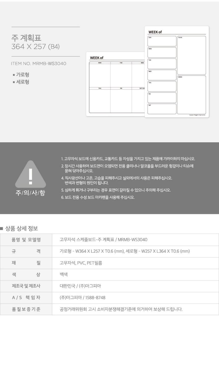 • 마그피아 고무자석 주간계획표 스케쥴보드_주계획표