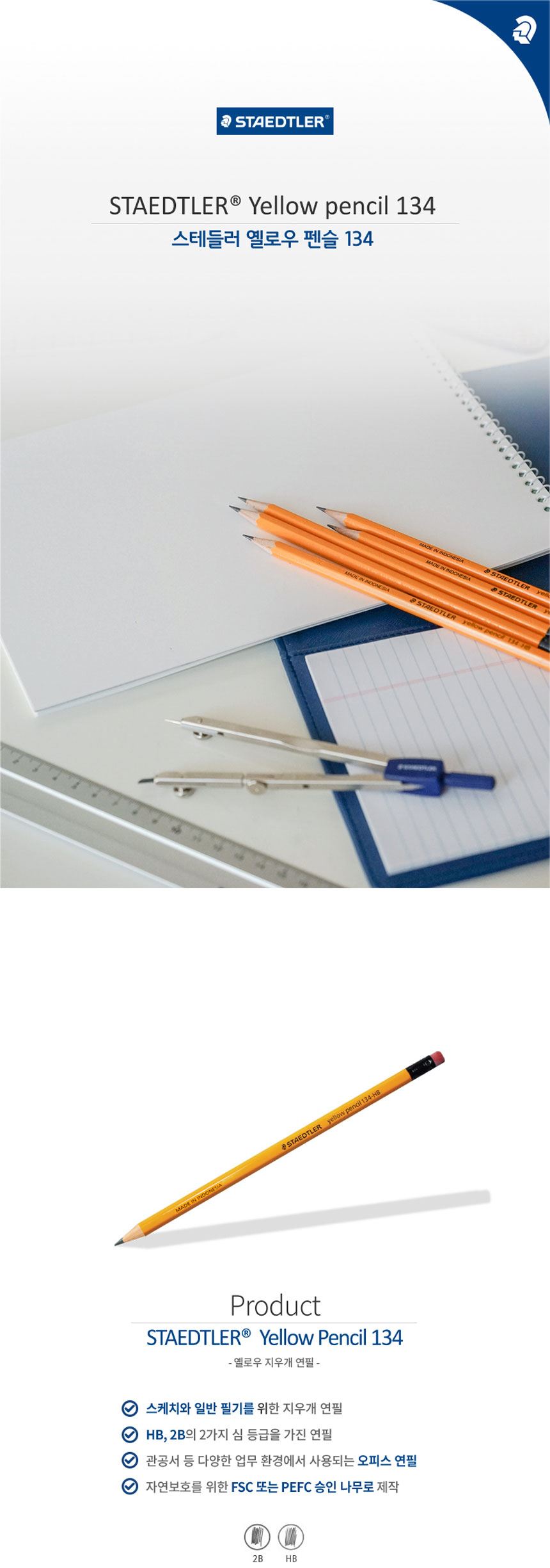 • 스테들러 사무용 옐로우 지우개 연필 134 1다스(12자루)